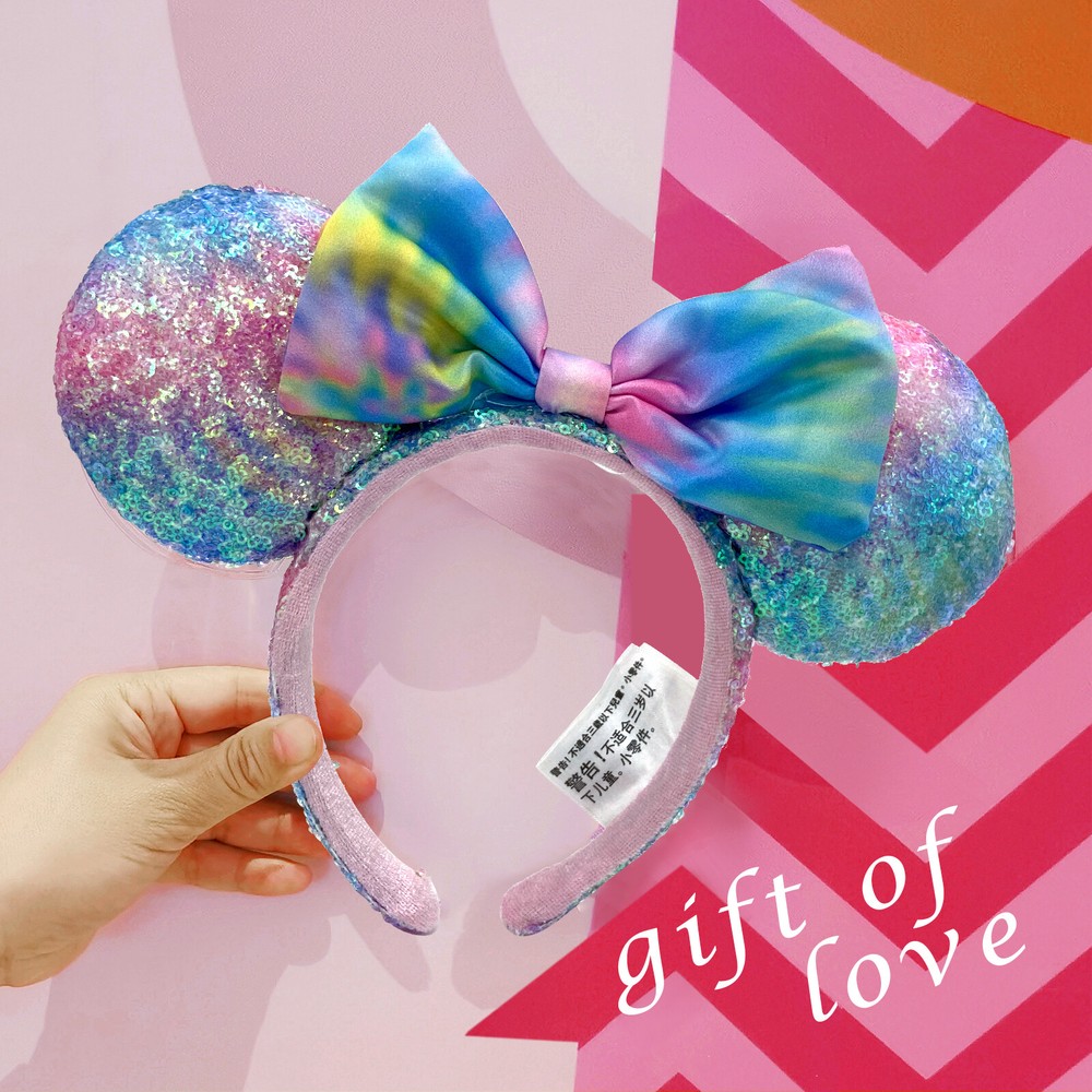 This headband is absolutely adorable! The pastel rainbow tie-dye and sequin Minnie ears add such a fun, magical touch—perfect for Disney fans. It fits comfortably on both kids and adults, and the colors are even prettier in person. Great quality and super cute for park days or festivals! Would definitely recommend.