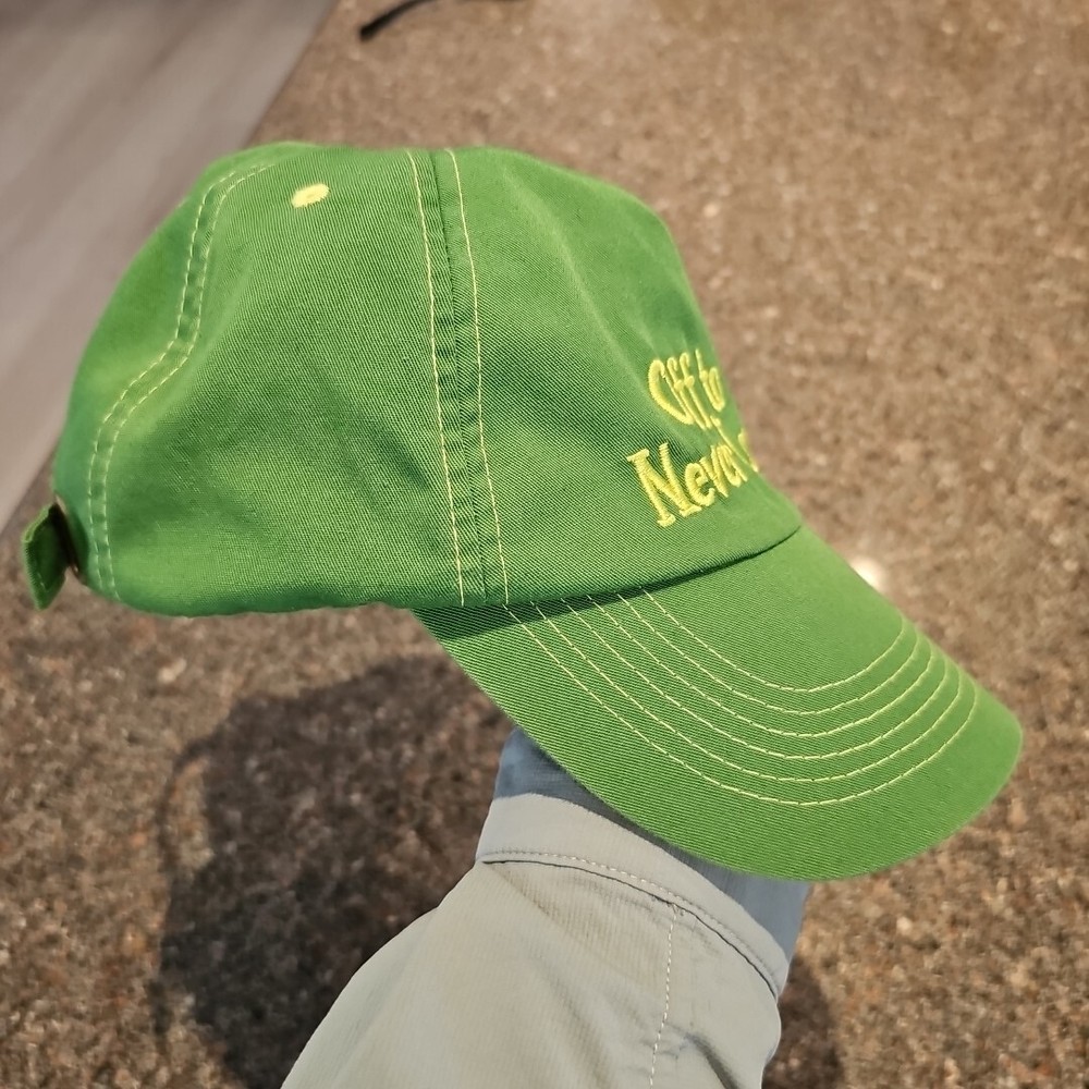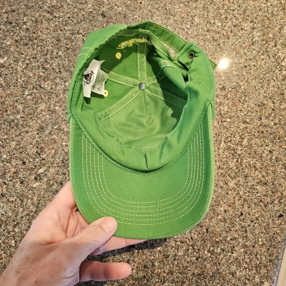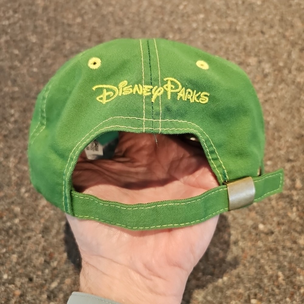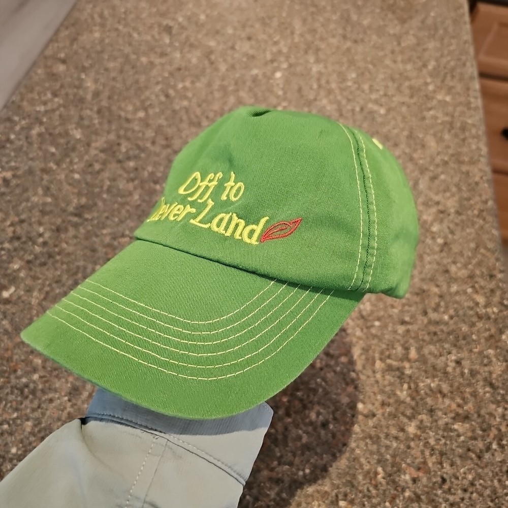This green Peter Pan 'OFF TO NEVER LAND' baseball cap hat is a must-have for any Disney fan. The cap features embroidered script from the iconic Peter Pan and is suitable for adults and kids that are fans. It is made by Disney and is perfect for any fan of the Peter Pan movie or Disney Parks.