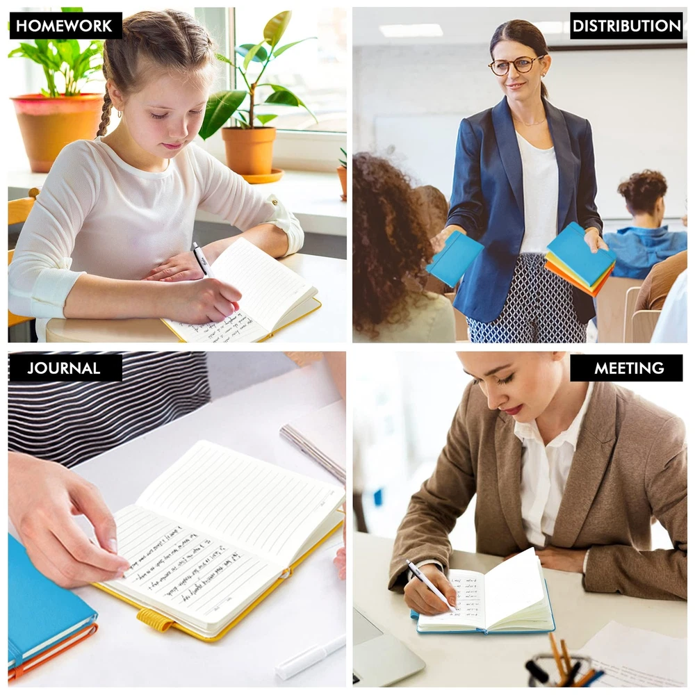 Pocket Mini Notebooks Bulk, Small Cute Memo Notepads Hardcover College Ruled Lined Journals with Pen Holder for School Business Work, with 6 Black Pens, 3.5”x 5.5”, 6 Pack, A6, Solid Colors 6 Pack College Ruled Notebooks contains 6 college ruled sturdy cover notebooks and 6 Black Retractable Pens. Each of the notebooks measures 3.5” x 5.5”, which is perfect to carry and easily held by young girls and boys. These black cute pens are customized to be placed in the pen holder, which is pretty convenient. These college ruled notebooks are all blank inside with 112 lined pages (56 sheets), which would be convenient for daily usage. The hard cover journal has a water-resistant faux leather cover, round corners and bookmarks, which is designed to lay and open flat. There’s a “date/page” column on the top of every page. You can use it as a reminder to let you remember those important dates and find the page you want in a very short time. 6 different solid colors for these notebooks. There are 6 Black Retractable Pens in the box. You can use it as soon as you receive it. These pens are perfect to be put in the pen holder of the classic ruled notebook. Large tube has the capacity of restoring more ink, which makes them long lasting. Quick drying can avoid smearing and smudge. 6 Pack College Ruled Notebooks Set would be perfect for many people and lots of occasions. It can be put in the pocket and small bags. Students of primary school and college can use it to write down notes or hand in homework. Commuters can use it to arrange your daily work schedule and jot down important milestones. Your small girl or boy can use it as the start of doodling and writing. Performance& Satisfaction: We provide you with not only our high quality products but also our quick response service.
