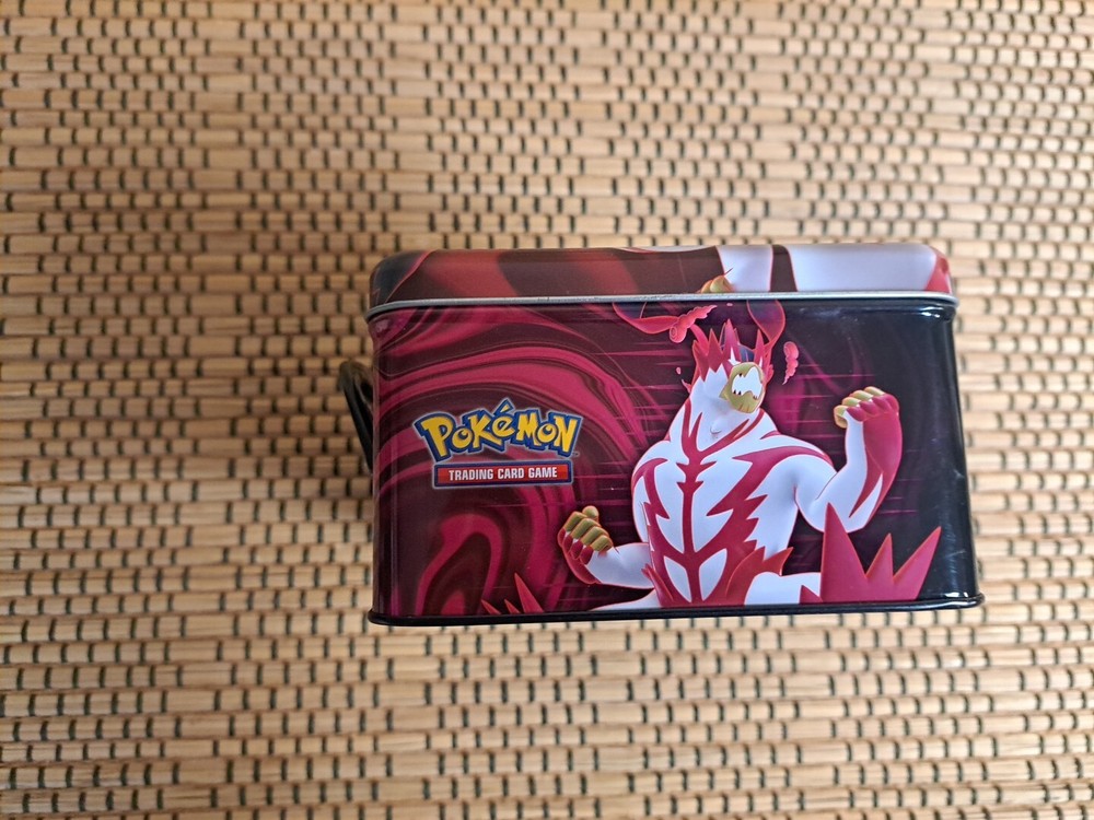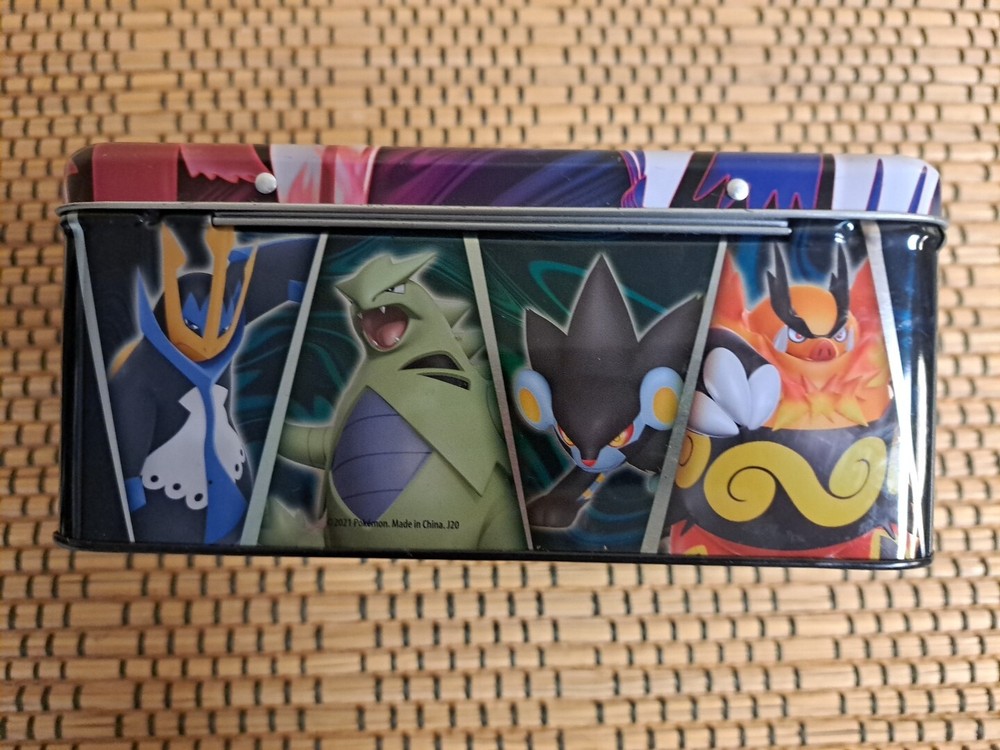 This Pokémon TCG Empty Tin is a must-have for any collector or fan of the popular trading card game. The tin is designed to resemble a lunch box and features the beloved Pokémon characters. It is made of high-quality materials, ensuring durability and protection for your cards. The tin is perfect for storage and transportation of your Pokémon TCG collection, whether you're heading to school or a tournament. The tin was manufactured by Konami in 2021 and is specifically designed for Pokémon TCG cards. It comes with a secure lid that keeps your cards safe and organized. This tin is not just functional, but also a great addition to any Pokémon fan's collection.