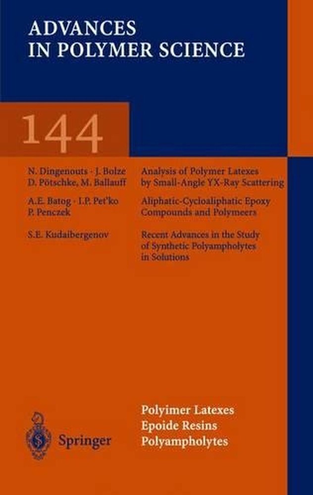 The Nile on eBay Polymer Latexes Epoxide Resins Polyampholytes by M. Ballauff, A.E. Batog, J. Bolze, N. Dingenouts, S. Kudaibergenov, P. Penczek, J.P. Pet'ko, D. Pötschke FORMAT Paperback LANGUAGE English CONDITION Brand New Table of Contents Analysis of Polymer Latexes by Small-Angle X-Ray Scattering.- Aliphatic-Cycloaliphatic Epoxy Compounds and Polymers.- Recent Advances in the Study of Synthetic Polyampholytes in Solutions. Promotional Springer Book Archives Feature Highest Impact Factor of all journals ranked by ISI within Polymer Science Short and -concise reports on physics and chemistry of polymers, each written by the world renowned experts Still valid and useful after 5 or 10 years Details ISBN 3662147203 Short Title POLYMER LATEXES EPOXIDE RESINS Pages 213 Series Advances in Polymer Science Language English ISBN-10 3662147203 ISBN-13 9783662147207 Media Book Format Paperback DEWEY 678.71 Series Number 144 Year 2013 Imprint Springer-Verlag Berlin and Heidelberg GmbH & Co. K Place of Publication Berlin Country of Publication Germany DOI 10.1007/978-3-540-68384-1;10.1007/3-540-68384-4 UK Release Date 2013-10-03 Publication Date 2013-10-03 Author D. Pötschke Publisher Springer-Verlag Berlin and Heidelberg GmbH & Co. KG Edition Description Softcover reprint of the original 1st ed. 1999 Alternative 9783540649113 Audience Professional & Vocational Illustrations 42 Illustrations, black and white; VII, 213 p. 42 illus. We've got this At The Nile, if you're looking for it, we've got it. With fast shipping, low prices, friendly service and well over a million items - you're bound to find what you want, at a price you'll love! TheNile_Item_ID:96343229;