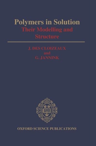 Polymers in Solution : Their Modelling and Structure, Hardcover by Des Cloizeaux, Jacques; Jannink, Gerard, ISBN 0198520360, ISBN-13 9780198520368, Like New Used, Free shipping in the US This book is devoted to the static properties of flexible polymers in solution, presenting the vast theoretical and experimental progress made in recent years. Work in this area has been especially fruitful because long polymer chains show a universality in their behavior when in solution, despite the variety in their chemical composition and physical properties. The authors include the results of new experimental techniques such as photon and neutron scattering, and the use of computer simulations. This work is the result of a collaboration between a theoretician and an experimentalist, who have both worked for many years on polymer solutions.