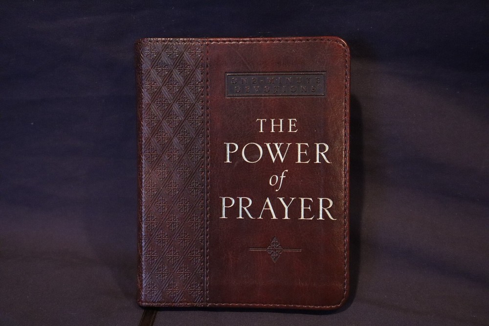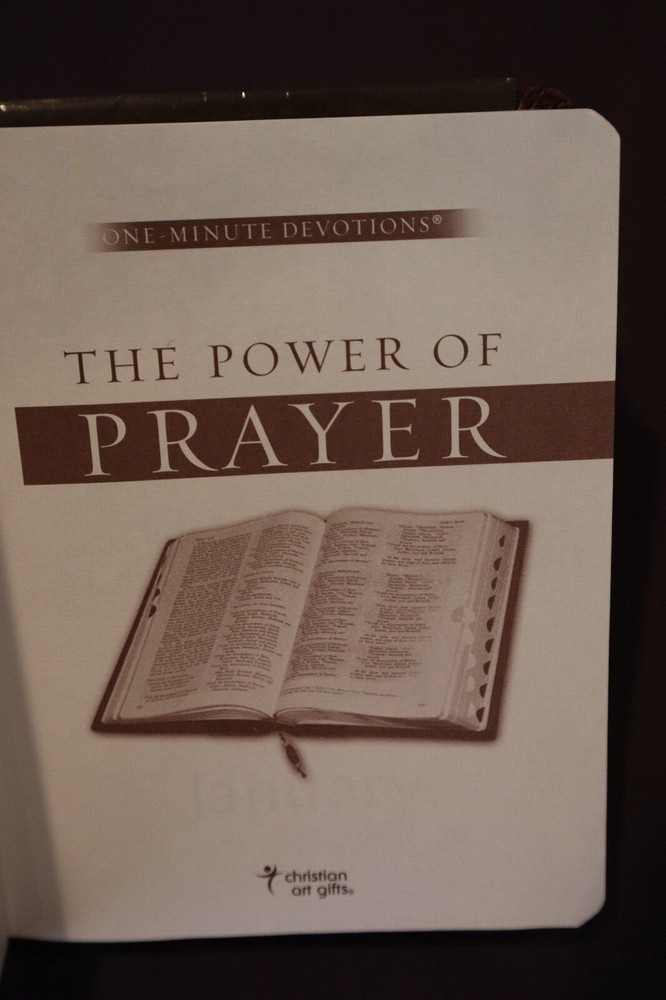 Power of Prayer One Minute Devotional Lux-Leather by Edward M. Bounds, gifting section already filled out, jacket on back has price scribbled out, no other markings...
