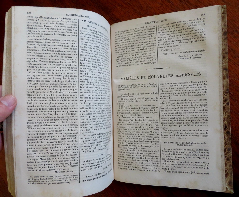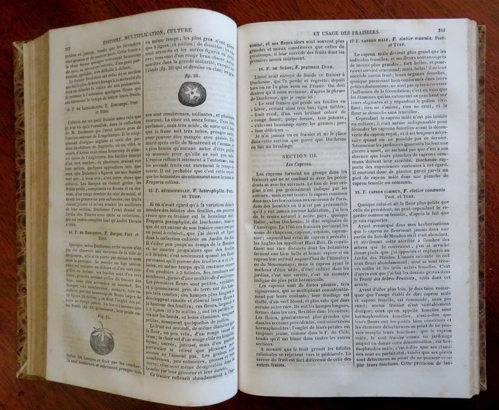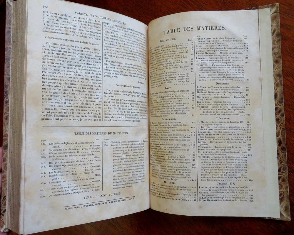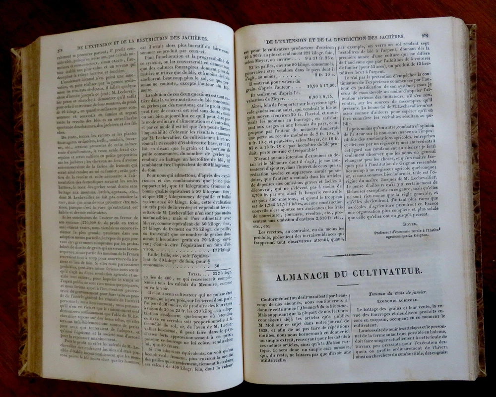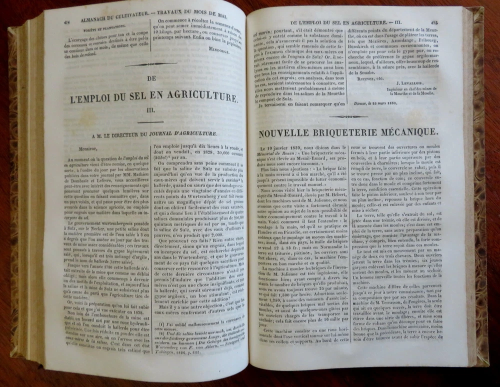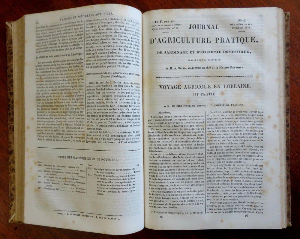 Practical Gardening Journal of Agriculture 1839 French leather book 12 issues Practical Gardening Journal of Agriculture 1839 French leather book 12 issues (Old Books, 19th Century Books, Leather Books, French Books, Agriculture, Gardening). Journal D'Agriculture Pratique De Jardinage et D'Economie Domestique. Published 1839, Paris by Bureau de la Maison Rustique. 576 pages. Text in French. Illustrated throughout with scattered small wood engravings. Second year- called Vol. 2, but complete unto itself and standing alone. Covers 12 months July 1838-June 1839. Attractive antiquarian 1/4 leather binding, smooth spine, gilt bands & title lettering, marbled covers. Book is physically old and shows some signs of handling and time. Binding gently age worn but still appealing, leather and joints slightly rubbed but still supple, remains overall very attractive as an object. Text block paper is gently age toned as typical, internally book remains mostly clean, tight and sound. A book which has been taken care of but may/ does not look like new. Still attractive on the shelf. Book displays a pleasing and unique age patina and is in rather nice antiquarian condition, any age flaws seem easy to overlook or forgive. Please review photos for more detailed attempt to present this book as it survives. We often over-describe any flaws that many sellers would not even bother to mention since most people would overlook them as minor and unworthy of comment. Many people tell us the books they receive from us are nicer in person than they appears on the screen. We want you to be clear about what you are buying, so we take numerous photos and try to describe it openly and honestly. Book Measures c. 10 1/4" H x 6 1/2" W. [B7462].