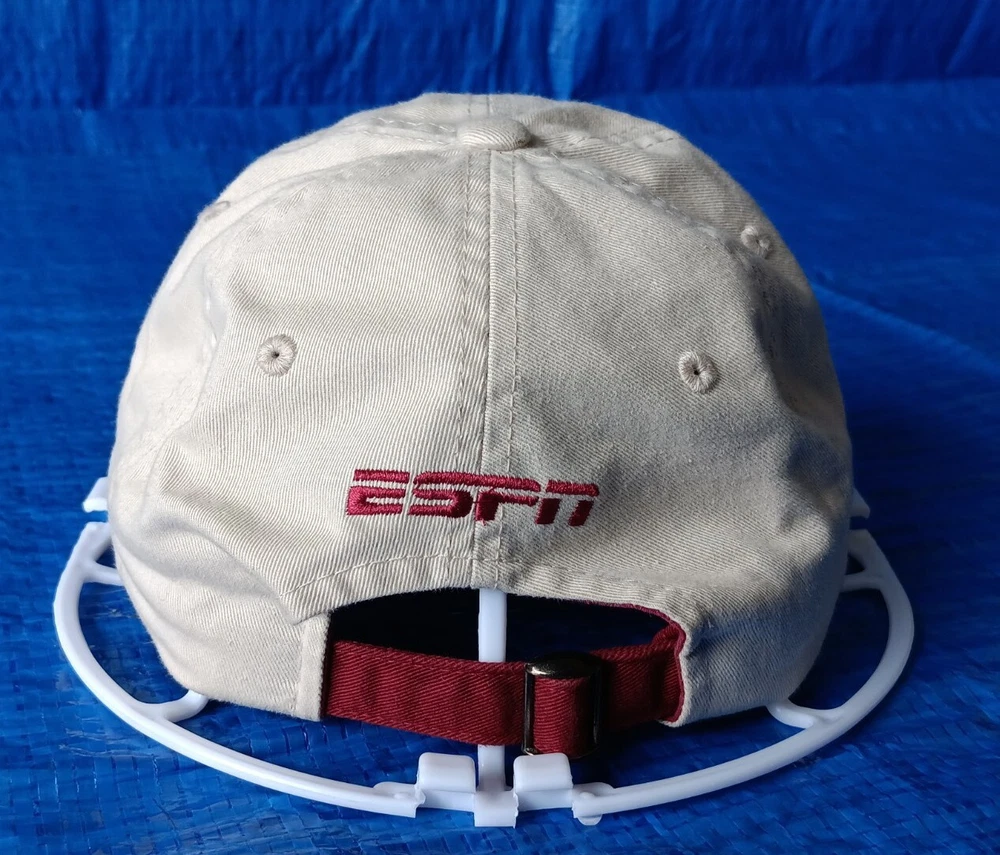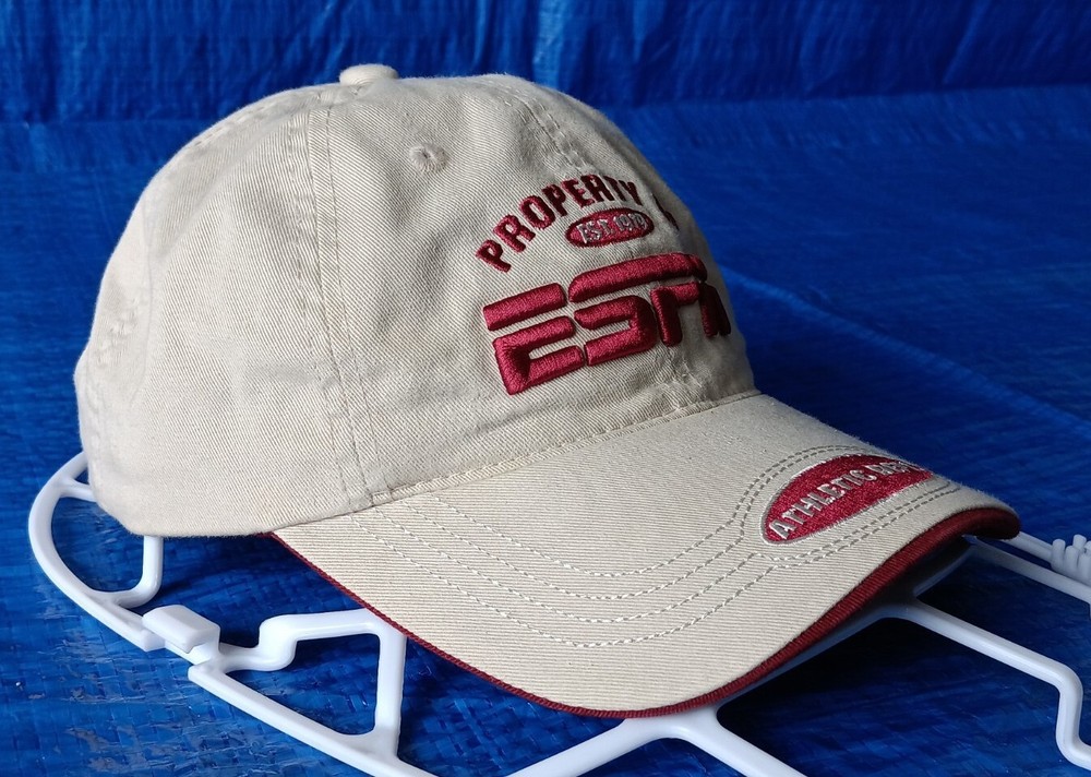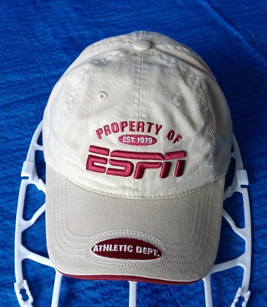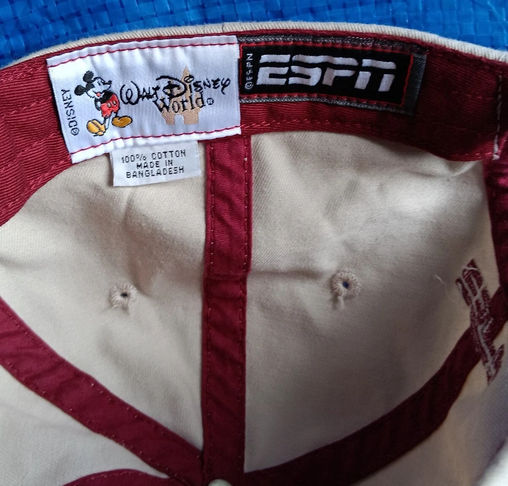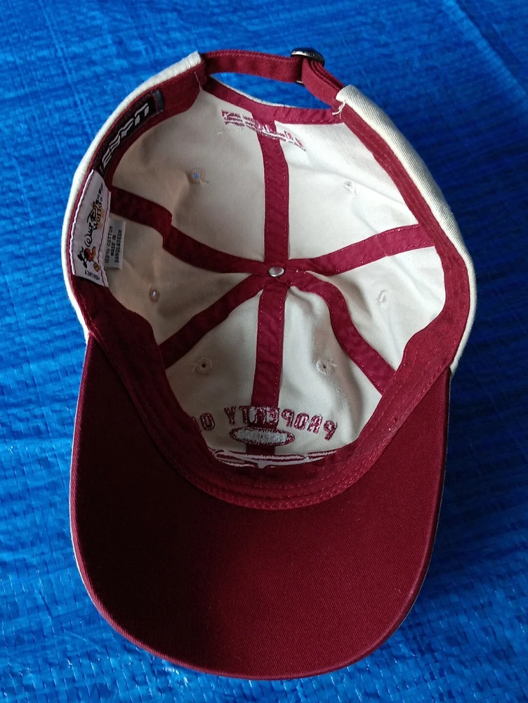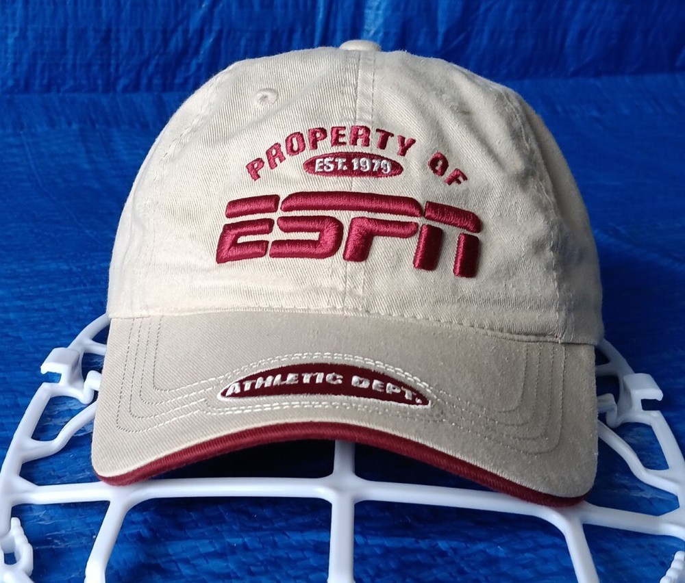 Property of ESPN Athletic Dept Beige Red Adjustable Strap Hat - Walt Disney World. This is pre-owned and in great condition. No markings or stains or smells. Zoom in on all pictures. This comes from a collector's home that is pet and smoke-free. We ship in a box for protection.