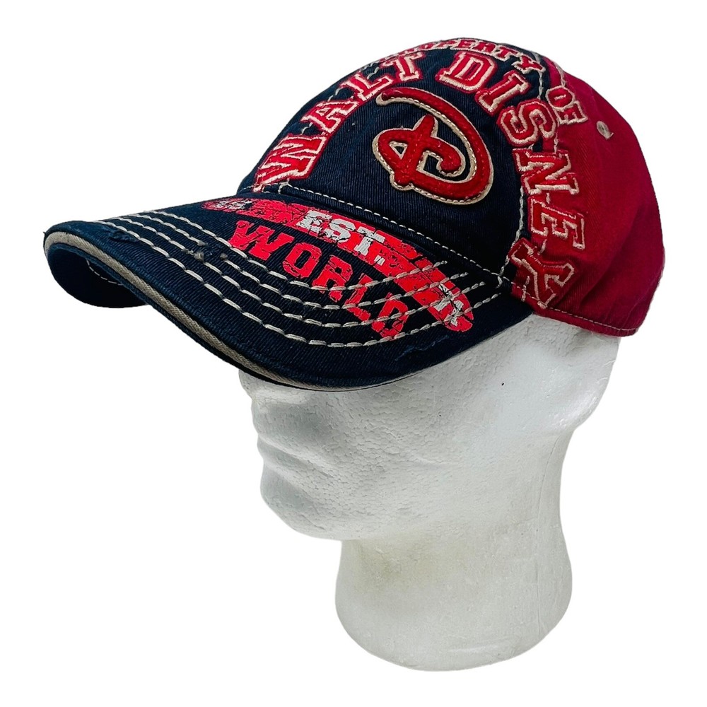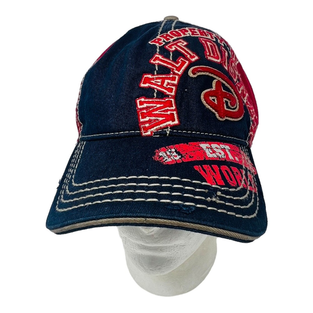 This baseball cap is a must-have for fans of Mickey Mouse and Walt Disney World. The hat features a blue and red color scheme with a strapback design. It is made in China and is suitable for adults in size M. The cap is a part of the Disneyana collectibles and falls under the category of contemporary apparel and accessories. The hat is perfect for both men and women and bears the iconic Disney franchise. Get your hands on this unique piece of Disney memorabilia today!