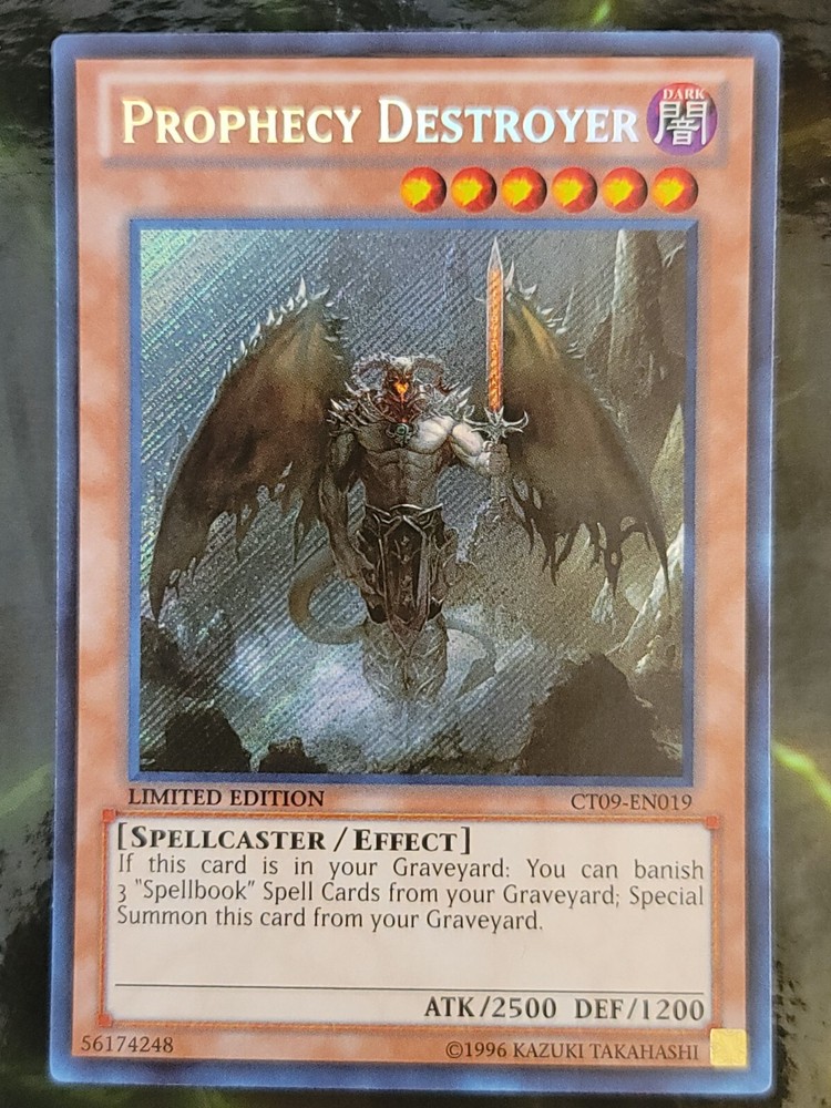 Immerse yourself in the strategic battles of Yu-Gi-Oh! TCG with the Prophecy Destroyer CT09-EN019, a formidable addition to any deck. This card is a must-have for enthusiasts seeking to gain an edge in their duels, offering unique capabilities that can turn the tide of any game.As a Secret Rare Limited Edition collectible, it's not just a powerful asset in gameplay but also a prized piece for collectors. Enhance your Yu-Gi-Oh! TCG experience with the Prophecy Destroyer and elevate your game to new heights. This card has always been in a protective sleeve, aside from picturing for better viewing.