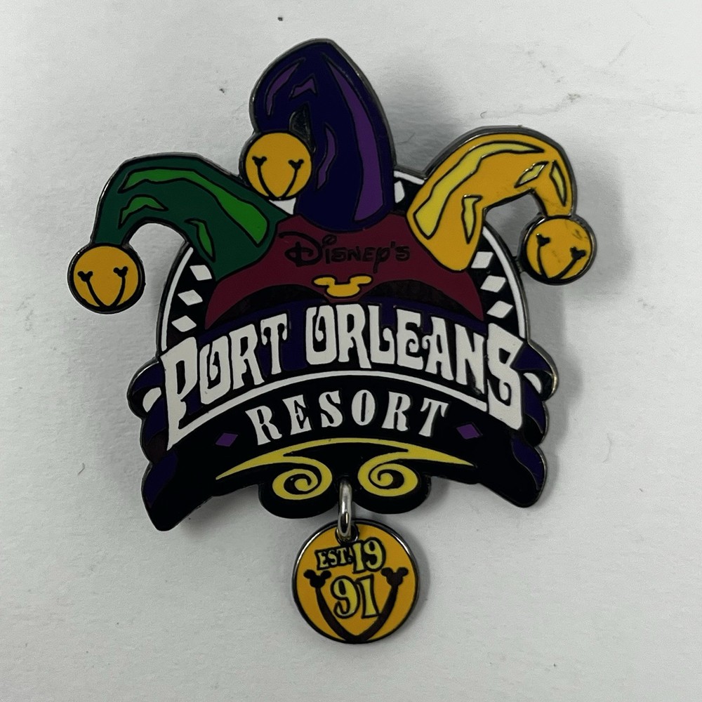 RARE 2001 Disney Port Orleans Resort Logo Jester Hat Pin w/ Dangle! RETIRED! WDW. Condition is Used. Shipped with Standard Shipping.