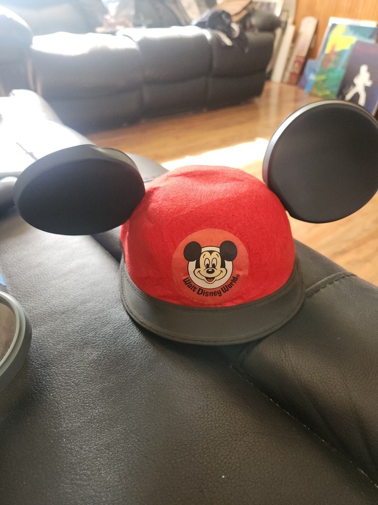 This rare vintage Walt Disney World Mickey Mouse ears child hat in red is a true gem for any Disney fan. Child Size. One ear leans forward slightly, one piece has pulled from the Hat. Measures 12 1/4 inches across x 7 1=2 inches wide x 6 inches tall. Please email me with any questions. Any offers will be considered.