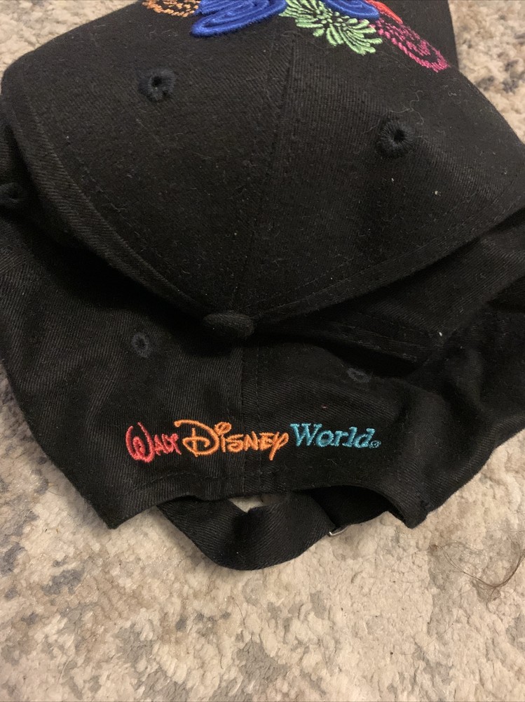 This rare vintage Walt Disney World Mouse Ears & Fireworks strapback hat is a must-have for any Disneyana collector or fan. Featuring the iconic mouse ears and a fireworks design, this hat was manufactured in Bangladesh in 2004 and is suitable for adults in size L. The black color adds an extra touch of class and sophistication to this already impressive piece. The hat is part of the Disney franchise and is a contemporary collectible that will look great in any apparel and accessories collection. Get your hands on this piece of Disney history and add it to your collection today!