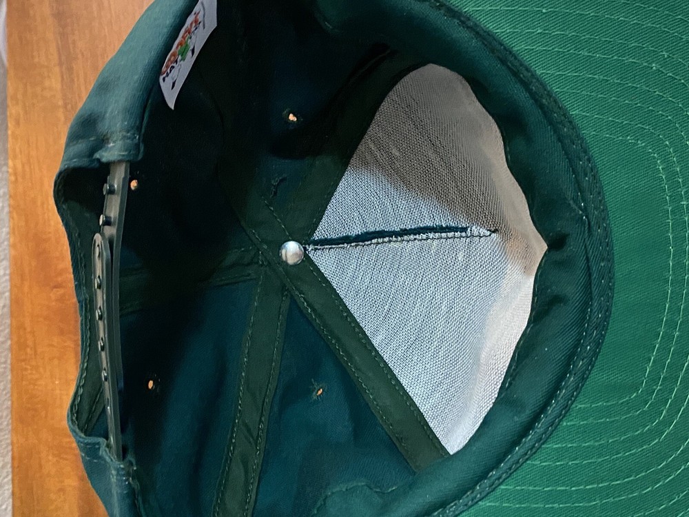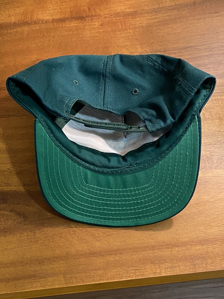 This is a rare vintage Disney Wilderness Lodge hat from the 90s. The pine green color and Mickey Mouse character make it a unique accessory for any casual occasion. The hat features a 5-panel style, is made of lightweight cotton knit material, and is handcrafted with no tags. It is adjustable, making it suitable for any head and is perfect for summer or spring. The hat is a grail item for any Disney collector and was manufactured in the United States during the 1980s-1989s. The vintage hat also features the USA and 90s themes. It is not signed, but it is clear that it is a Disney product due to its unique design and the Disney brand. This hat will make a great addition to your collection or a perfect gift for someone special.