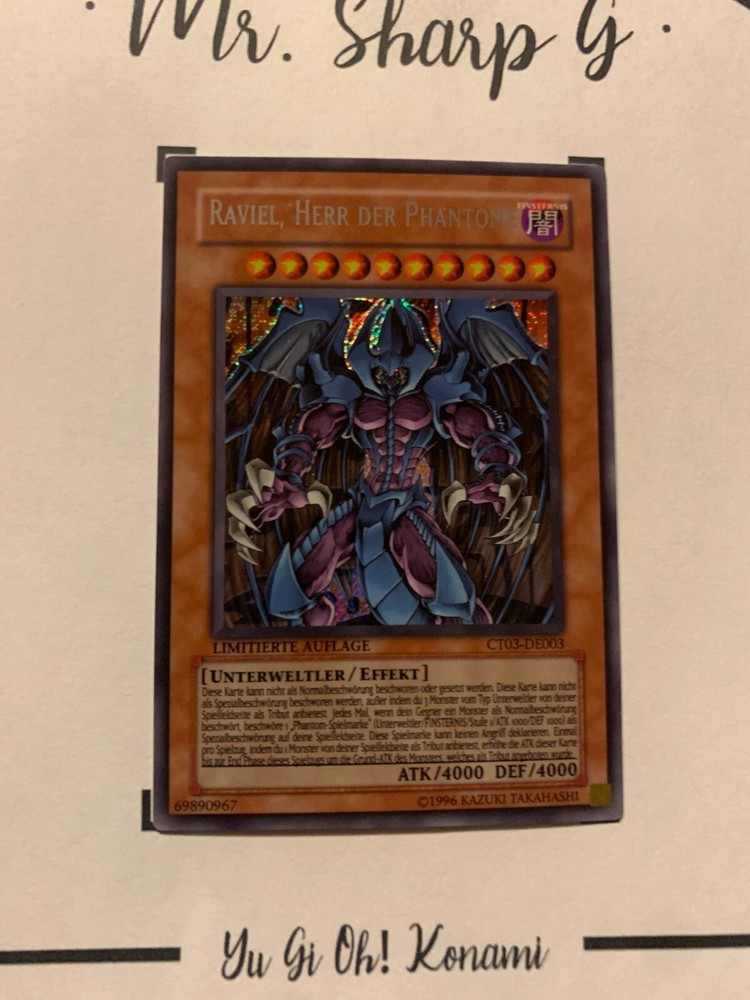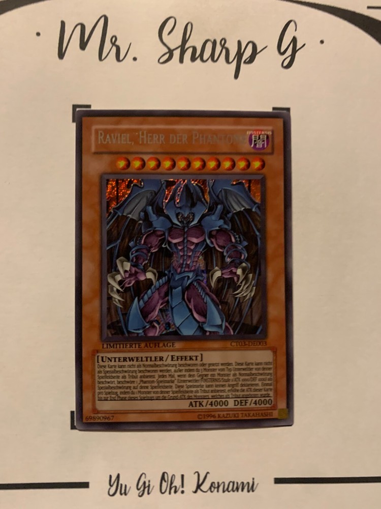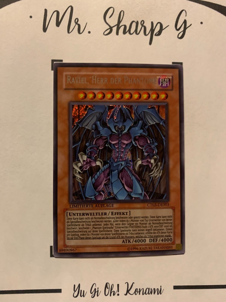 - Mr. Sharp G - - Online Store - TRADING CARDS-TCG-COLLECTION-SETS-TOURNAMENT-Yu Gi Oh! Konami * * * RAVIEL, HERR DER PHANTOME - LIMITIERTE AUFLAGE CT03-DE003 - Bitte schauen Sie sich die beigefügten Bilder an, um einen vollständigen Überblick über den Zustand jedes Artikels zu erhalten. - Zustand des Artikels: Gebraucht - in einem nahezu neuwertigem Zustand. - Typ/ Serie: UNTERWELTLER/ EFFEKT / LIMITIERTE AUFLAGE CT03-DE003 - Seltenheitsstufe/ Rarity: SECRET RARE - Edition : COLLECTOR'S TIN 2006 / 2006 / DEUTSCH / KONAMI * * * + Kartenschutzhülle & Toploader inklusiver im Preis + mehrfache Bestellung = einmalige Versandkosten + versicherter Versand Bestellung in Höhe - v. 8,50EUR in Deutschland/ Inland - v. 12,50EUR im Ausland/ International + Großbestellungen kostenloser Versand Inland und International - Bei Fragen, Details, nicht im Bestand gewünschte Karten/ Artikel oder Versandgutschriften schreiben Sie uns! Wir freuen uns auf Ihre Nachricht! - Vielen Dank für Ihr Vertrauen, Unterstützung und Besuch in unserem Store ! - Ihr Mr. Sharp G Team
