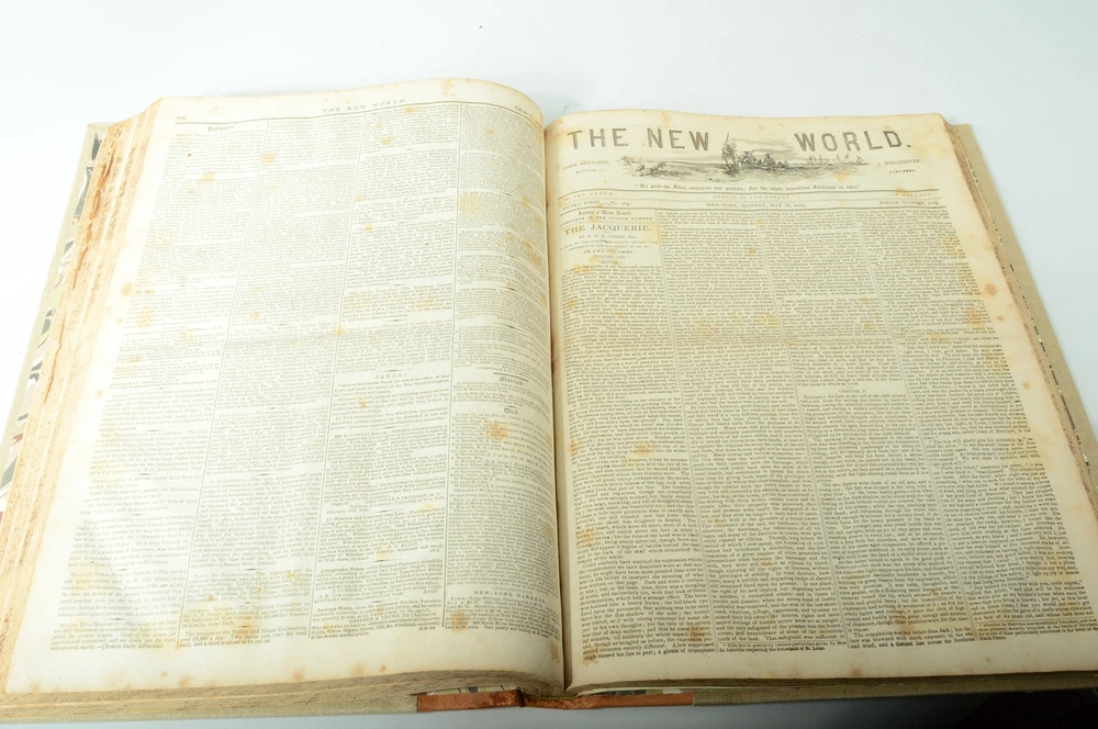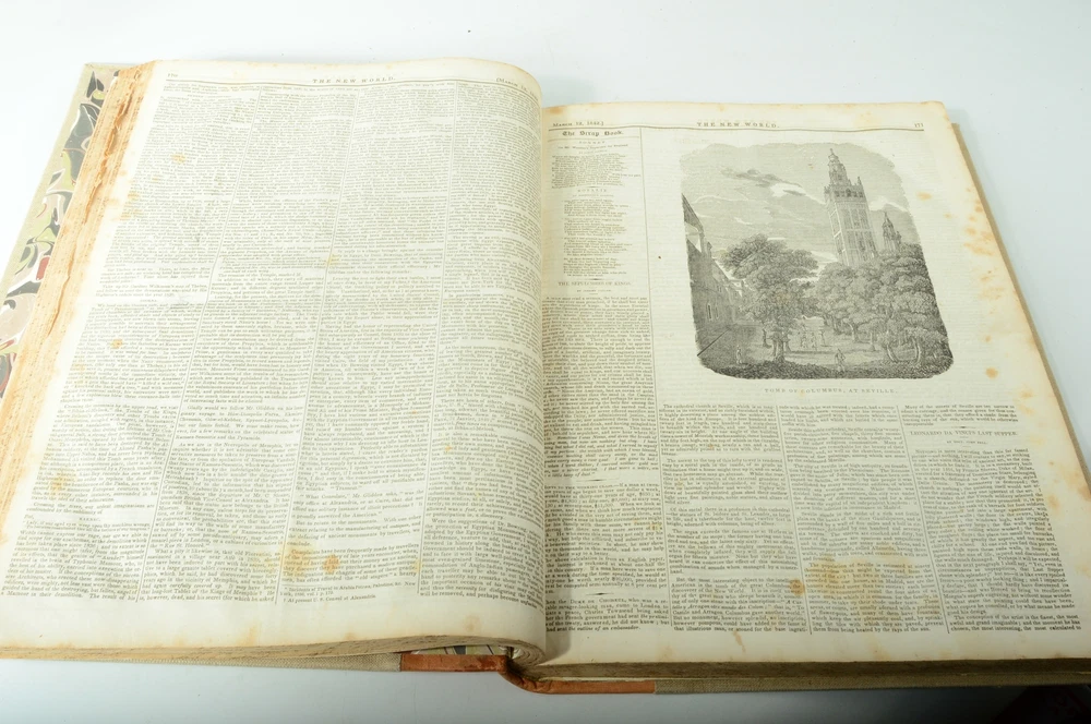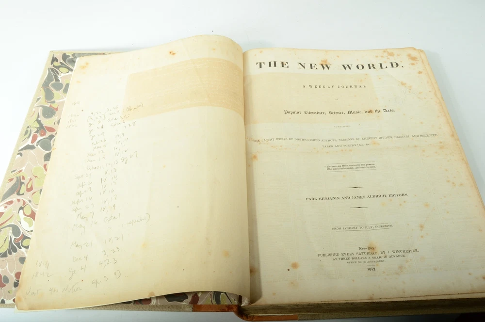Fast, Secured Delivery 23 Years on eBay Sent With a Tracking Number Rare Book The New World: A Weekly Journal Literature Science Music Arts V23 DESCRIPTION 11 3/4'' wide by 15 3/4'' tall and 1 1/4'' thick. Rebound in 1/4 calf and linen. Raised cords and green labels. The interior is in very good condition with penciled notations at start. The notations describe what is actually in this volume, index of only limited use. Nice engravings. Contains notice of Poe leaving Grahams Magazine, notice of christening of Prince of Wales. Editorial on Americanism, notice on Dickens' trip to America. Plus poems, sermons and news of the week. News reported on the invasion of Texas. Vintage rebound in calfskin and linen. A very fine job. Book is 11 3/4'' wide by 15 3/4'' tall and 1 1/4'' thick. Some staining to external leather. Newsprint pages have some significant foxing, some edge tears and creases on some pages. See photos and the Item Description above. Unless otherwise stated, you are buying EXACTLY what you see and everything you will receive is shown. We will combine shipping upon request for multiple photos. Payment Shipping Returns International Sell To Us! Payment Shipping Returns International Sell To Us! We accept payment by any of the following methods: PayPal Most Buy-It-Now items require immediate payment. For items selling at auction or Best Offer, please pay as soon as possible after you commit. We ship most items within one business day and we know you want your item FAST! Currency Payment with US currency is permitted and is required if the listing permits local pickup and if you choose that option. We are happy to accommodate local pickups in most cases where an item is heavy or bulky. We will simply ask you to sign an invoice indicating that you have received your item and to present photo id. This is for your protection and to ensure that only you can receive your item Your order will be shipped, in most cases, within 1 working day of receiving payment (Monday-Friday). Check the Shipping section near the top of the listing for full details of shipping time and costs. If your shipping costs seem too high, this may be due to to an error in the eBay shipping calculator. If you believe this is happening to you, please contact us. We can usually resolve any issues quickly. We are committed your happiness! If you are not 100% satisfied with your purchase, you may return the product within 30 days for a full refund. If we have a duplicate product in stock, we can exchange it. Simply contact us BEFORE opening a case with eBay. Once a case opened, our flexibility to help you is more limited. You can return a product for up to 30 days from the date you purchased it, subject to the following conditions of our Return Policy: Any product you return must be in the same condition in which you received it and in the original packaging. Please keep the receipt. Any additional shipments of the item TO you or BY you during the return period will void your return privileges. This includes: 1) Having an item shipped to a friend, relative or freight forwarding company which, in turn, ships the item to you; 2) Shipping the item to someone else or to a company. These actions void the 30-day return period because we can only be responsible for packing and shipping of an item send directly to you from us. You may not, without our written authorization, disassemble or remove a cover fastened by screws or rivets. You may not, without our written authorization, have an item serviced or cleaned. Or do these things yourself. We take pride in serving customers worldwide and have customers in over 50 countries. Nearly all of our products may be shipped internationally. Please let us know if the shipping charge seems too high and we will re-check it for you. Sometimes the shipping calculator estimates too high a price. If this happens, let us know and we will give you a more precise quote. We always declare the selling price of the item on all Customs documentation in accordance with United States laws. We understand if the duty imposed by your country makes certain items unaffordable. Unfortunately, we have no control over this. We are buyers of camera and movie equipment, fine mechanical and electronic watches and much more! If you are thinking of selling, please contact us for a fast and fair offer! See our other items Click here to see description 23 Years on eBay DESCRIPTION Rare Book The New World: A Weekly Journal Literature Science Music Arts V23 11 3/4'' wide by 15 3/4'' tall and 1 1/4'' thick. Rebound in 1/4 calf and linen. Raised cords and green labels. The interior is in very good condition with penciled notations at start. The notations describe what is actually in this volume, index of only limited use. Nice engravings. Contains notice of Poe leaving Grahams Magazine, notice of christening of Prince of Wales. Editorial on Americanism, notice on Dickens' trip to America. Plus poems, sermons and news of the week. News reported on the invasion of Texas. Vintage rebound in calfskin and linen. A very fine job. Book is 11 3/4'' wide by 15 3/4'' tall and 1 1/4'' thick. Some staining to external leather. Newsprint pages have some significant foxing, some edge tears and creases on some pages. See photos and the Item Description above. Unless otherwise stated, you are buying EXACTLY what you see and everything you will receive is shown. We will combine shipping upon request for multiple photos. Payment We accept payment by any of the following methods: PayPal Most Buy-It-Now items require immediate payment. For items selling at auction or Best Offer, please pay as soon as possible after you commit. We ship most items within one business day and we know you want your item FAST! Currency Payment with US currency is permitted and is required if the listing permits local pickup and if you choose that option. We are happy to accommodate local pickups in most cases where an item is heavy or bulky. We will simply ask