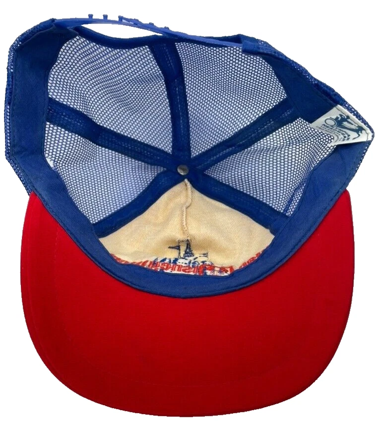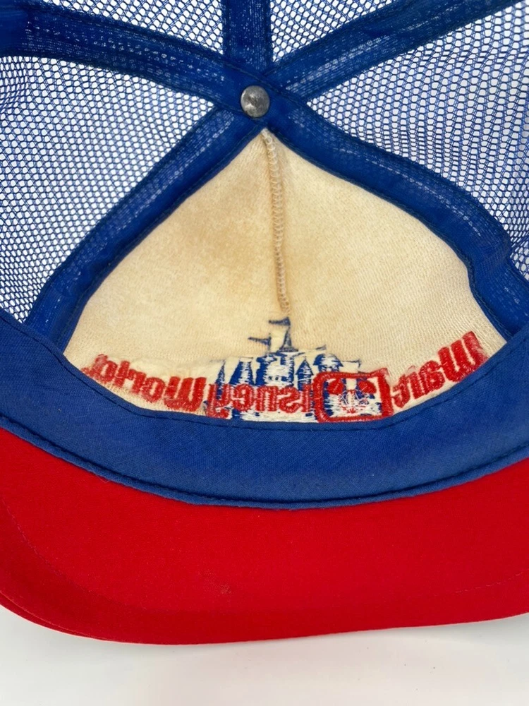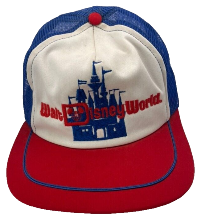This rare vintage Walt Disney World Castle Trucker Snapback Hat is a must-have for any Disney fan. The hat features a blue color with an embroidered Mickey Mouse character on the front. Made in the United States in 1980, this hat is suitable for adults and is perfect for unisex wear. The hat is part of the Disneyana franchise and is a rare find for collectors. The Olympian brand hat is a great addition to any hat collection and is perfect for displaying your love for Disney. The hat has a snapback closure to ensure a comfortable fit for all head sizes. Don't miss out on the opportunity to own this unique and rare piece of Disney history. Condition as shown in photos. Happy to provide additional pictures or answer any questions upon request. Thanks for looking!