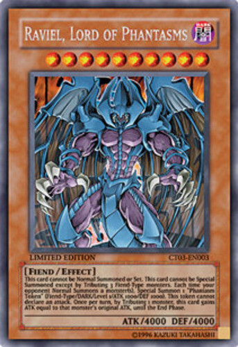 Please, carefully read the following: Image shown is a stock photo and does not reflect the actual card you will be receiving. Please refer to the condition guide below, the title and item description for what you will be receiving. Please also be aware that due to plastic shortages, orders may not always come in a plastic toploader but will always be protected as much as possible to prevent damage. You will receive 1x Raviel, Lord of Phantasms - CT03-EN003 - Secret Rare - Limited Edition - Condition: Moderately Played Please refer to the Title and Item Description above for the item being purchased. Delivery delays: Deliveries may not always fall within the estimated delivery dates when shipping outside of Canada and USA. Many factors may contribute to delays in delivering the package such as weather and customs. Please note that delivery to international locations may take up to 8 weeks to arrive . We always ship out orders within 1 business day and after dropping off with the post office, delivery times are out of our control. Feedback: We will always leave positive feedback for you and we ask if you can do the same for us. If there is any reason why the transaction was not up to your expectations, please message us before leaving feedback so we can address the issue. Combined shipping: To receive a combined shipping quote, please make sure that you commit to purchasing on ebay.ca . This allows us to send you a combined shipping invoice before payment. Shipping within the USA (6-10 Business days): FREE! Shipping within Canada (3-8 Business days): FREE! Shipping and handling delay: We aim to ship all orders within 1 business day. We do not ship on weekends and holidays. Condition Guide: We do not sell any cards that are in MINT condition, the best condition that we offer is near mint. Near Mint (NM) - Cards in Near Mint condition show minimal to no wear from shuffling, play or handling and can have a nearly unmarked surface, crisp corners and unblemished edges outside of a few minimal flaws. A Near Mint card may have a tiny edge nick or a tiny scratch or two, but overall look nearly unplayed with no major defects or flaws. Lightly Played (LP) - Cards in Lightly Played condition may have minor border or corner wear or even just slight scuffs or scratches. There are no major defects such as water damage, bends or issues with the structural integrity of the card. Noticeable imperfections are okay, but none should be too severe or at too high a volume. Moderately Played (MP) - Cards in Moderately Played condition exhibit condition issues visible at a casual glance. Cards in Moderately Played condition can have border wear, corner wear, scratching or scuffing, creases or whitening, minor dirt buildup or any combination of mild examples of these marks. A Moderately Played card may have some form of a more major marking, such as spot water damage or creasing that doesnʼt affect card integrity, but not in combination with other issues such as scratches, scuffs or border/edge wear and not impacting a large area of the card. Heavily Played (HP) - Cards in Heavily Played condition show a severe amount of wear. Heavily Played condition can include cards that have major creasing, major whitening, major border wear or any combination of those flaws. (These flaws cannot prevent the card from being tournament playable when sleeved.) Damaged - Cards in Damaged condition can exhibit a tear, bend or crease that may make the card illegal for tournament play, even in a sleeve. Cards in Damaged condition may have extreme border wear, extreme corner wear, heavy scratching or scuffing, folds, creases or tears or other damages that impacts the structural integrity of the card.