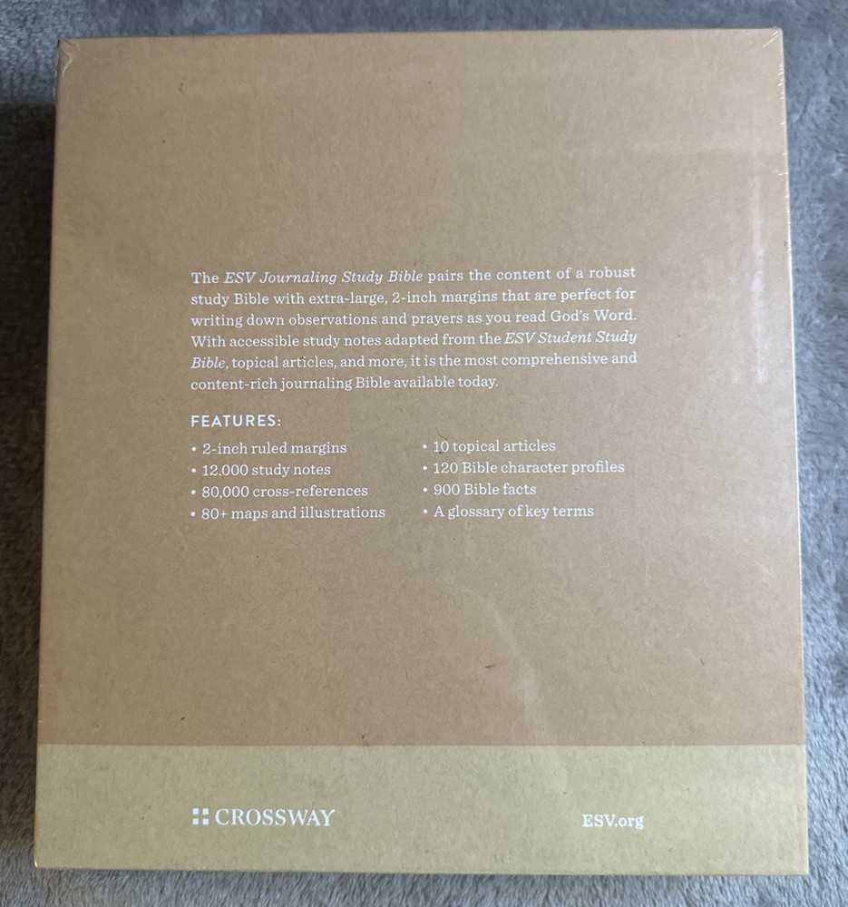 Further Details Title: ESV Journaling Study Bible Condition: New Description: Take Notes alongside Scripture with this ESV Journaling Study Bible Featuring 12,000 In-Depth Study Notes The ESV Journaling Study Bible pairs the content of a robust study Bible with extra-large, 2-inch margins that are perfect for writing observations, prayers, and more as you study God’s Word. Featuring more than 12,000 study notes adapted from the ESV Study Bible , this journaling Bible also includes nearly 900 special facts, 120 Bible character profiles, 10 topical articles, a glossary of key terms, more than 80 maps and illustrations, and 80,000 cross-references. These and many other features make it the most comprehensive and content-rich journaling Bible available today. Perfect for Journaling: 2-inch ruled margins are ideal for taking notes during a sermon, recording prayers and praises, or illustrating alongside Scripture 12,000 Study Notes: Accessible study notes on every page help readers dive deeper into Scripture’s meaning and application Robust Bible Resources: Includes 80,000 cross-references, 80+ maps and illustrations, 10 topical articles, 120 Bible character profiles, and more Author: Hans F. Bayer Contributor: T. Desmond Alexander (Contributions by), Erika Allen (Contributions by), Geoff Allen (Contributions by), Clinton E. Arnold (Contributions by), Brian Aucker (Contributions by), David W. Baker (Contributions by), Paul Barker (Contributions by), David P. Barrett (Contributions by), S. M. Baugh (Contributions by), Hans F. Bayer (Contributions by), Barry J. Beitzel (Contributions by), Ronald Bergey (Contributions by), Travis Buchanan (Contributions by), David Chapman (Contributions by), C. John Collins (Contributions by), John D. Currid (Contributions by), Bill Deckard (Contributions by), Lane T. Dennis (Contributions by), Mark Dever (Contributions by), Iain M. Duguid (Contributions by), Mark D. Futato (Contributions by), Duane A. Garrett (Contributions by), Simon J. Gathercole (Contributions by), Wayne Grudem (Contributions by), Scott J. Hafemann (Contributions by), Kenneth Laing Harris (Contributions by), Paul R. House (Contributions by), David M. Howard Jr. (Contributions by), Gordon P. Hugenberger (Contributions by), Dennis E. Johnson (Contributions by), Brian Kelley (Contributions by), Nobuyoshi Kiuchi (Contributions by), August H. Konkel (Contributions by), Andreas J. Köstenberger (Contributions by), V. Philips Long (Contributions by), Dennis R. Magary (Contributions by), Walter A. Maier III (Contributions by), J. Gordon McConville (Contributions by), Sean M. McDonough (Contributions by), Ray Van Neste (Contributions by), Colin R. Nicholl (Contributions by), Stephen J. Nichols (Contributions by), Ray Ortlund (Contributions by), Grant Osborne (Contributions by), Doug Oss (Contributions by), John Oswalt (Contributions by), J. I. Packer (Contributions by), John B. Polhill (Contributions by), Vern S. Poythress (Contributions by), Iain W. Provan (Contributions by), Paul R. Raabe (Contributions by), David Reimer (Contributions by), Leen Ritmeyer (Contributions by), Max Rogland (Contributions by), Thomas R. Schreiner (Contributions by), Jay Sklar (Contributions by), Andrew Stewart (Contributions by), Justin Taylor (Contributions by), Frank Thielman (Contributions by), David Toshio Tsmura (Contributions by), Robert I. Vasholz (Contributions by), Barry G. Webb (Contributions by), Paul Wegner (Contributions by), Gordon Wenham (Contributions by), Michael J. Wilkins (Contributions by), Robert W. Yarbrough (Contributions by) Format: Leather Bound ISBN-10: 1433592517 EAN: 9781433592515 ISBN: 9781433592515 Publisher: Crossway Books Release Date: 09/14/2023 Language: English Country/Region of Manufacture: US Item Height: 210mm Item Length: 187mm Genre: Philosophy & Spirituality Item Weight: 1549g Type: Translations Item Width: 51mm Release Year: 2023 Missing Information? Please contact us if any details are missing and where possible we will add the information to our listing.