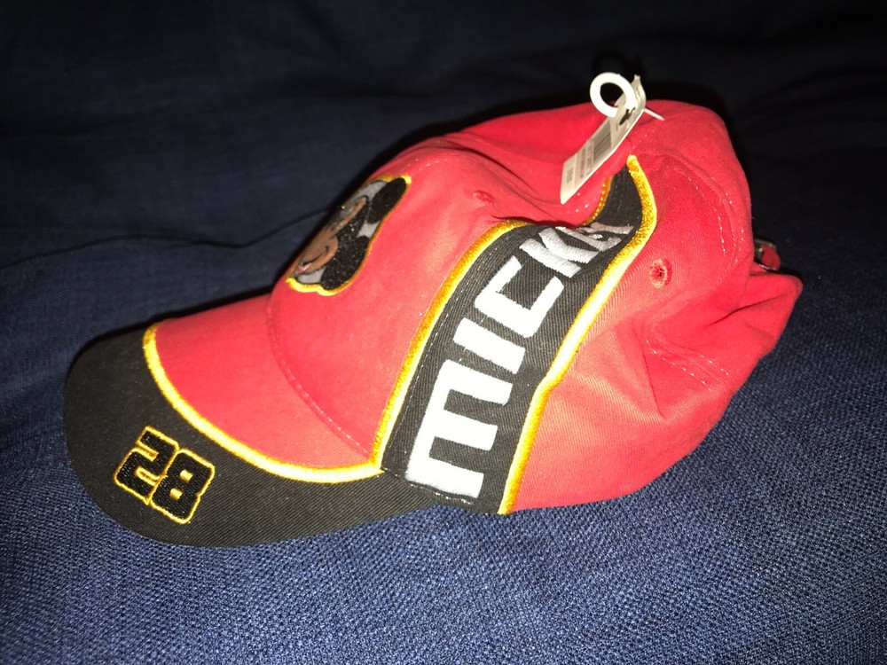 Red #28 Mickey Mouse Walt Disney World Baseball Cap Hat NWT Adjustable. Walt Disney World hat Mickey Mouse Racing Cap #28 NWT Embroidered Red and Black #28 Mickey Racing Look BaseballCap Full fabric – no plastic net Adjustable band Comes from Smoke Free Home