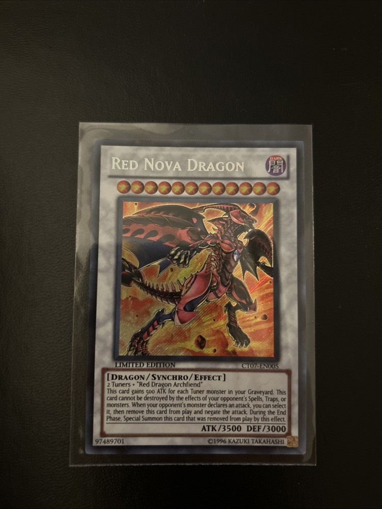 Product Details 2 Tuners + Red Dragon Archfiend // This card gains 500 ATK for each Tuner monster in your Graveyard. This card cannot be destroyed by the effects of your opponent's Spells, Traps, or monsters. When your opponent's monster declares an attack, you can select it, then remove this card from play and negate the attack. During the End Phase, Special Summon this card that was removed from play by this effect. Number: CT07-EN005 Rarity: Secret Rare Attribute Monster Type/Card Type: DARK Dragon/Synchro/Effect Monster A / D: 3500 / 3000