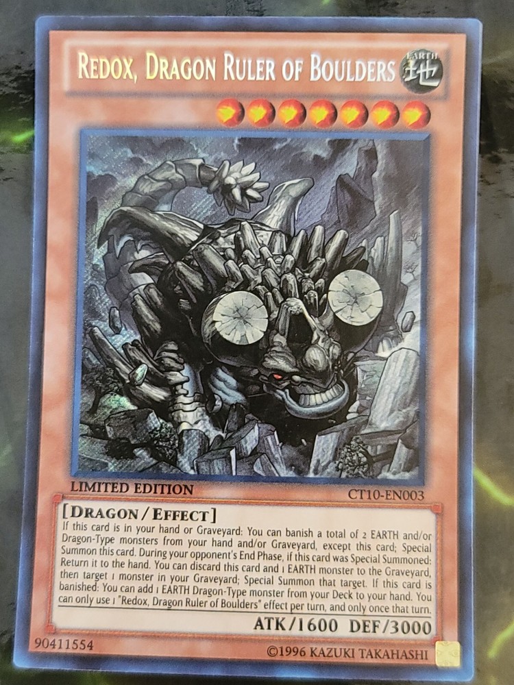 Elevate your Yu-Gi-Oh! TCG strategy with the formidable Redox, Dragon Ruler of Boulders card, a must-have for any duelist seeking a strategic advantage. As a Secret Rare gem from the Limited Edition sets, Redox is not just a powerful addition to your deck but also a collectible treasure for enthusiasts.With its unique abilities that can turn the tide of battle, Redox, Dragon Ruler of Boulders offers endless possibilities for creative play and victory conditions. Secure this exceptional card and integrate its raw strength into your game plan. This card has always been in a protective sleeve, aside from picturing for better viewing.