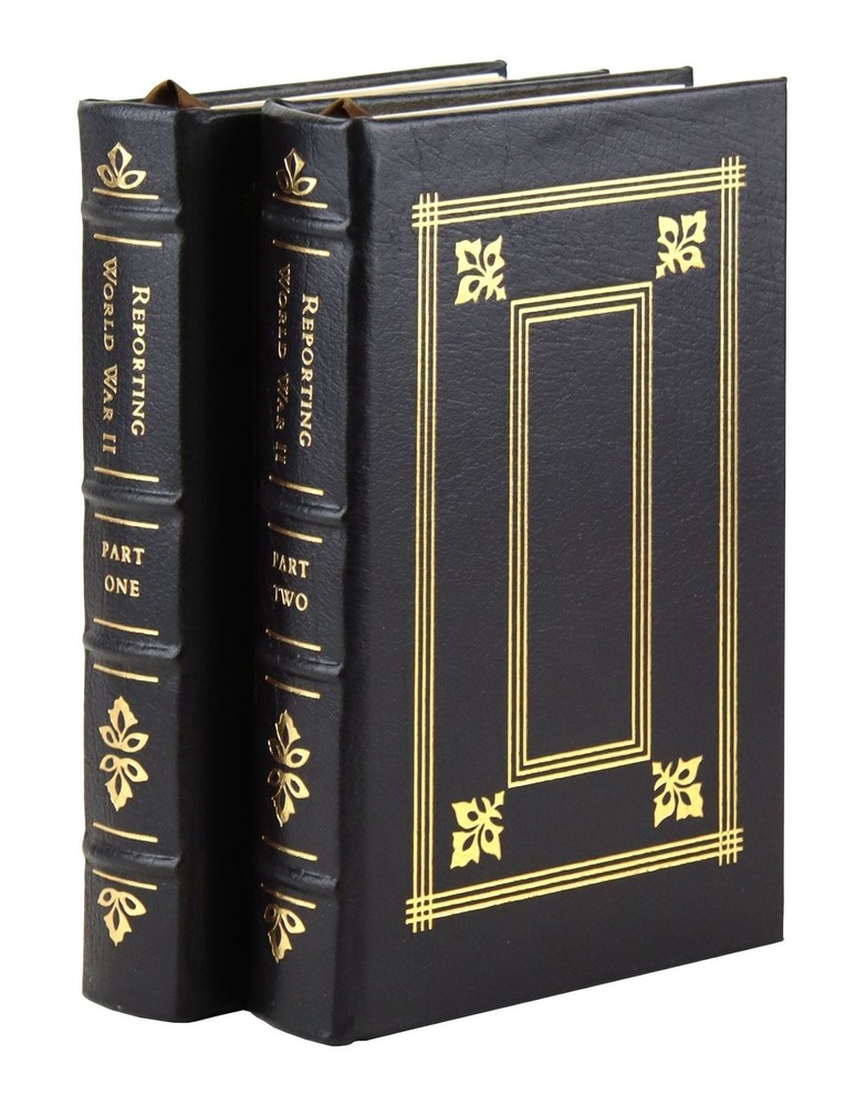 Reporting World War II [Two volumes] Author: Ernie Pyle; Vincent Tubbs; A.J. Leibling; Ernest Hemingway et al. [contribs.] Title: Reporting World War II [Two volumes] Publication: New York: Library of America / Libraries of Gryphon Editions, 1995 Description: Near Fine. New York: Library of America / Libraries of Gryphon Editions, 1995. First Edition. Two octavo volumes. 912; 970pp. + advertisements. Black and white photographs and illustrations. Bound in publisher's full black leather decorated in gilt; four raised bands; all edges gilt; marbled endpapers; silk ribbons. Boards slightly cocked; bindings sound; interiors unmarked; Near Fine. Seller ID: 32859 Subject: Journalism / Media, Military History, World War II Capitol Hill Books is a used bookstore located on historic Capitol Hill in Washington DC, with three floors of quality used books, first editions, and rare books. [Note: Our online inventory is stored and managed at a separate location from at our brick and mortar shop. If you have a question about an item listed online, please send a direct message here rather than calling the store so that we can make sure someone familiar with the item in question can respond.] Terms Books described only as First Editions are First Printings unless otherwise specified. All items are guaranteed to be as described or they may be returned within 30 days of receipt for a full refund. All orders ship within two business days. Standard mail is USPS Media Mail. Expedited and international shipping are also available (please contact for estimates). We offer combined shipping on multiple orders. This listing was created by Bibliopolis.