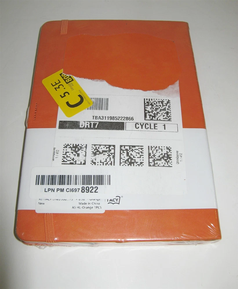 Rettacy Lined Journal Hardcover Orange Leather Covers Elastic Closure, 1 Pen Holder Loop 2 Ribbon Bookmarks, 1 Back Pocket, Free Sticky Notes 192 Pages Size - 5.75" x 8.38" New Still sealed Plastic seal doesn't quite cover the rear cover. Does not affect condition. Powered by SixBit's eCommerce Solution