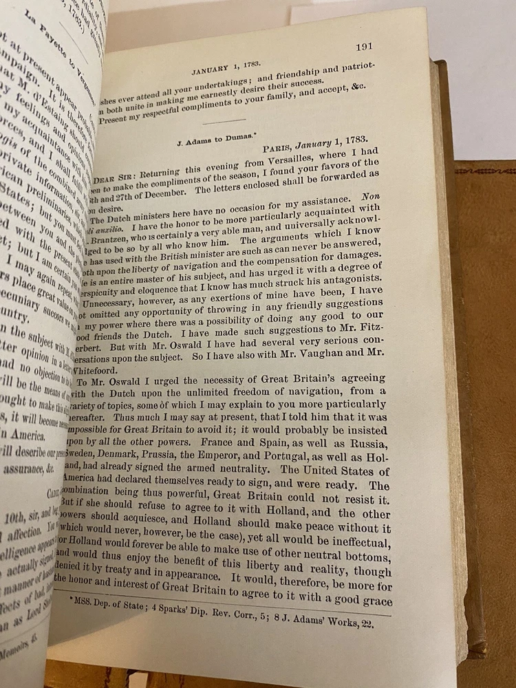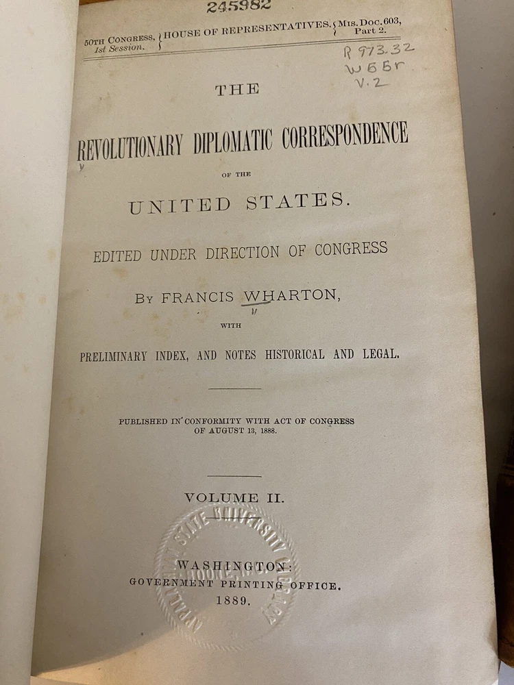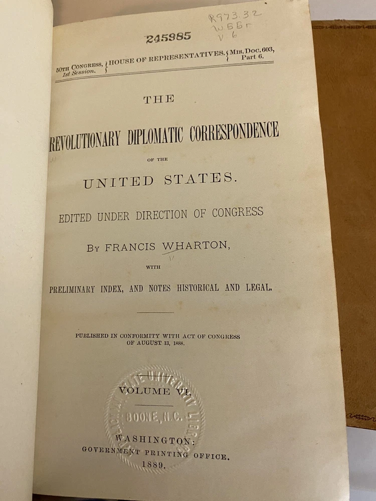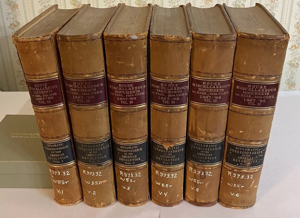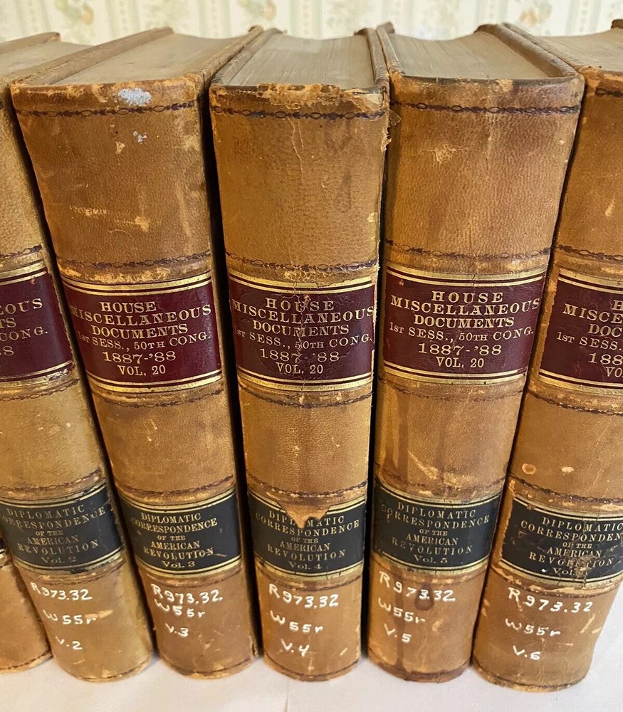 Immerse yourself in the formative years of American diplomacy with this rare collection of six volumes from the 1889 first edition of the Revolutionary Diplomatic Correspondence of the United States , edited by the esteemed historian Francis Wharton . This set offers an unparalleled glimpse into the correspondence that shaped the nation's foreign relations during the Revolutionary era. Key Features: Authentic First Edition (1889): Published by the Government Printing Office, Washington, D.C. Volumes I–VI Included: A comprehensive assembly of letters, reports, and dispatches from pivotal figures such as Benjamin Franklin , John Adams , and Thomas Jefferson . Historical Significance: Delve into the strategic dialogues and negotiations that secured international support and recognition for the budding United States. Primary Source Material: An invaluable resource for historians, scholars, and enthusiasts of American history. Condition Details: Volume I Index: Binding: Exhibits some weakness in the front and back board joints; hinges are fragile but intact. Volumes II–VI: Binding: Boards are firmly attached with no issues; strong and sturdy. General Wear: Covers: All volumes show typical shelf wear consistent with books of this age, including scuffed edges and gentle rubbing. Spine: Titles and embellishments remain legible; slight fading may be present. Overall: The set presents well on the shelf, embodying the character and gravitas befitting its historical importance. Why This Set is Special: Rich Historical Content: Gain direct insight into the diplomatic efforts that were crucial to America's fight for independence. Collector's Value: First editions of this work are scarce, making this set a prized addition to any collection of Americana. Educational Worth: An essential reference for academic research, offering authentic material not easily found elsewhere. Don't Miss This Opportunity! Acquire a tangible piece of American history that not only enriches your collection but also connects you directly with the narratives that defined a nation. This set is more than just books—it's a journey back to the birth of U.S. diplomacy. Please see the photos. Secure this exceptional set today and own a cornerstone of Revolutionary War scholarship!