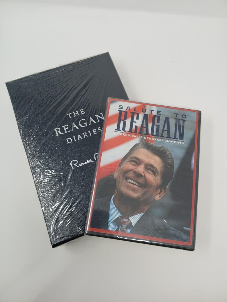Ronald Reagan Diaries book (with sleeve) with a bonus Salute to Ronald Reagan DVD. Set of two.