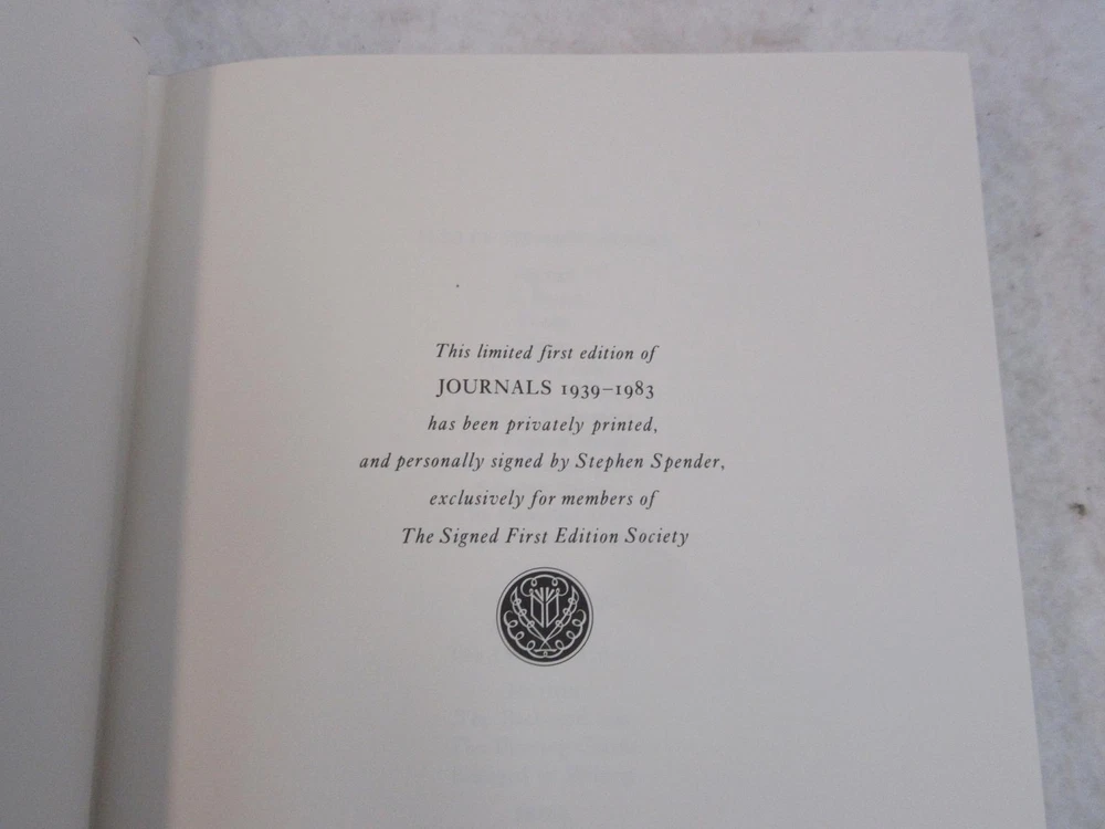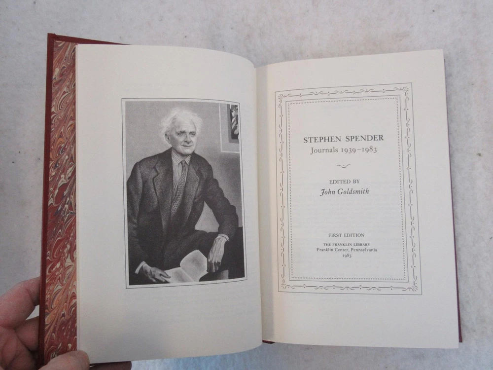 STEPHEN SPENDER Journals 1939-1983 Franklin's Signed First Edition Society Franklin Library, 1988 Includes Editors Cover Letter No Bookplate A Unread Fine Leather Hardcover. Please examine photos for details. Please examine photos for details. Condition: We strive to describe and photograph the condition of every item as accurately as possible. Photos are of the actual item that is being sold. Please examine the photos carefully for any condition details and possible flaws. Best Offers: We consider all offers in relation to current market values. We try to respond almost immediately to most offers. Most of our counteroffers are firm but we are open to bargaining. Shipping: We combine shipping. When ordering multiple items from us please request a total before paying. We charge postage based on weight plus $1 for each eBay listing. All of our orders are packed carefully to prevent damage during shipment. We ship most of our items within 24 hours. Contact Us: We are available 7 days a week and are happy to answer any questions you may have. Showcase your items with Auctiva's Listing Templates! THE simple solution for eBay sellers.