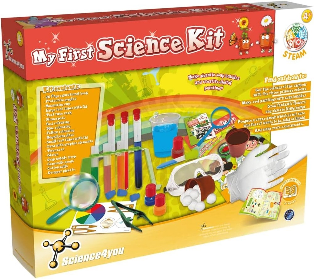 Further Details Title: Science4you 80003055 Science Condition: New Description: PRODUCT DESCRIPTION Explore the 38 contents included in this educational science kit and learn how to create a rainbow, a fun crazy dough and amazing giant soap bubbles. Create a fun finger painting or a flower garden with the 26 experiments included in this science lab toy. With this scientific chemistry set you make a fantastic rainbow with the three primary colours. Learn more about the colours and observe what happens when the 7 colours of rainbow are mixed with this science toy and crafts set. With this amazing science kit for kids the children learn their first steps in the world of science. Make your garden flowers and learn how plants grow and develop with the scientific experiments of this educational science kit. My first Science Kit is perfect for children, 4-8 years old who love the world of science and chemistry. An Educational toy inspired by the STEAM methodology (before known as STEM toy). STEAM stands for Science, Technology, Engineering, Arts and Mathematics. Educational book included. This educational toy is the perfect Christmas or Birthday gift for kids. Perfect for kids who love magic of science and chemistry. SAFETY WARNING For external use only. Avoid contact with eyes. Item Height: 80mm Brand: Science4you Material: Plastic Item Length: 380mm Item Width: 290mm Item Weight: 650g Theme: Science Type: Science Kits MPN: 80003055 Dimensions: 38 x 29 x 8 cm; 650 Grams Explore the 38 contents included in this educational science kit and learn how to create a rainbow, a fun crazy dough and amazing giant soap bubbles. With this amazing science kit for kids the children learn their first steps in the world of science. With this scientific chemistry set you make a fantastic rainbow with the three primary colours. Missing Information? Please contact us if any details are missing and where possible we will add the information to our listing.