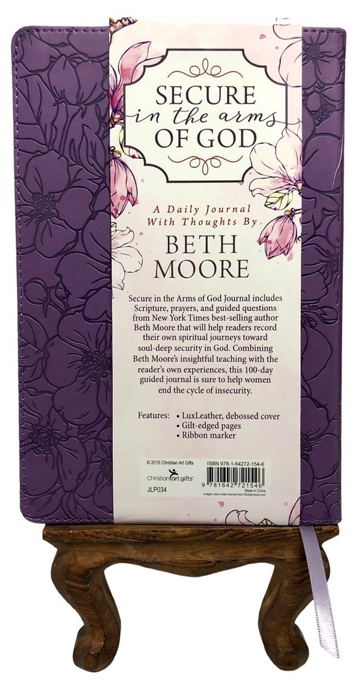 Hello! Welcome to our listing. You will be purchasing a Secure in the Arms of God: A Daily Journal with Thoughts by Beth Moore. Faux Leather Bound with Built in Ribbon Bookmark. 2011 edition. Illustrated. Scriptures throughout. Very good pre-owned condition. No missing, ripped, or torn pages. No pen/pencil/highlighting marks. Binding is tight. Journal has not been used. Shows light cover shelf wear, with scuffing and/or bumped corners, marks from being on display, etc. See all pictures, zoom & enhance for details. The book you see in the pictures is the actual book you will be receiving. Great gift for the journaling book lover or for yourself! **Bookstand not included in this listing** Please see all pictures for details. If you have any questions please ask before purchasing. This item will ship media mail USA. **We do combine shipping, please message us before paying, so that we can adjust an invoice for you** Thank you for looking at our listing!