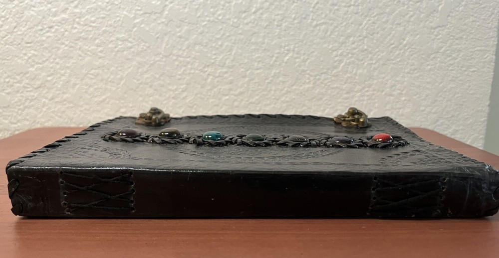 Leather Journal Seven Stone Chakra Notebook Blank Bound Papers Book of Shadows This item was stocked and some paper sheets have stained....