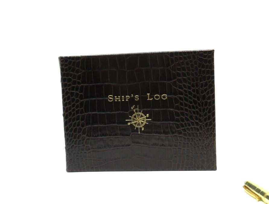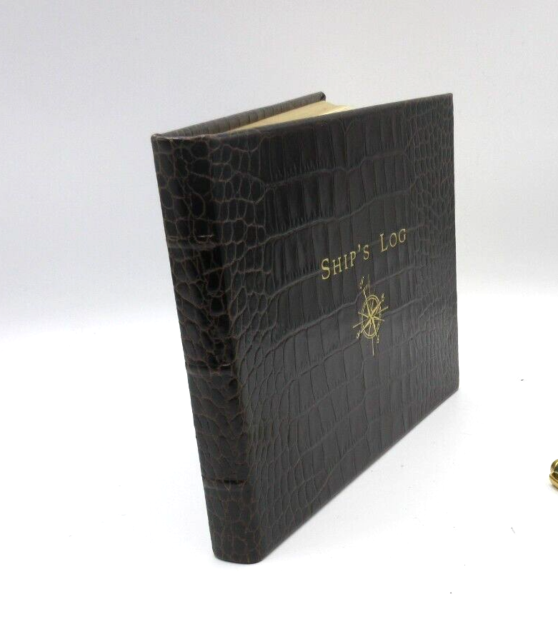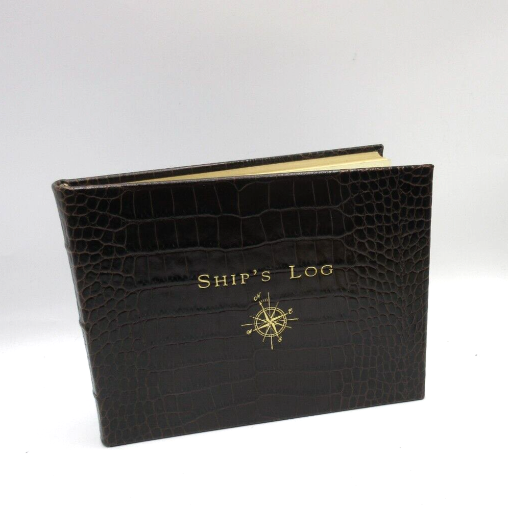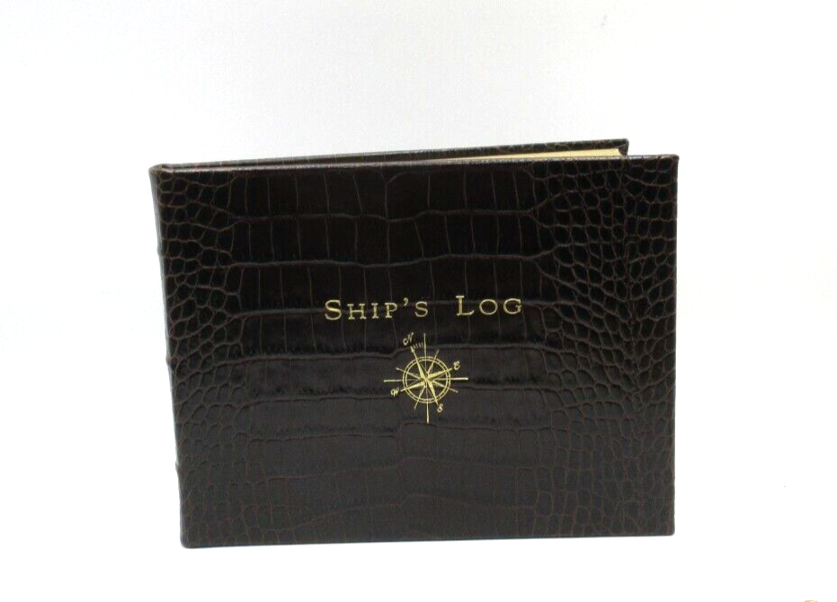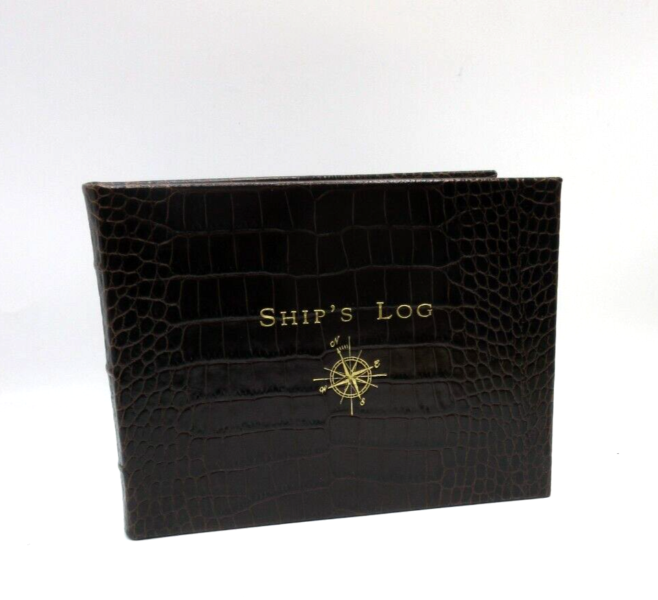 New Ship's Log by Graphic Image Brown Croc embossed Leather Gold embossed Cover Pages are edged in gold Retails for $130 A classic captain's journal for trips on the high seas. This leather journal features 162 entry pages and 28 U.S. and international maps. Record all your adventures including places visited, people, weather, waves and crew. Size: 8-7/8" x 6-3/4", 190 pages Smyth-sewn for strength and longevity Ships in plastic sleeve and GI GIFT BOX WE WILL ALWAYS ADJUST SHIPPING COSTS ON PURCHASES OF MULTIPLE ITEMS.