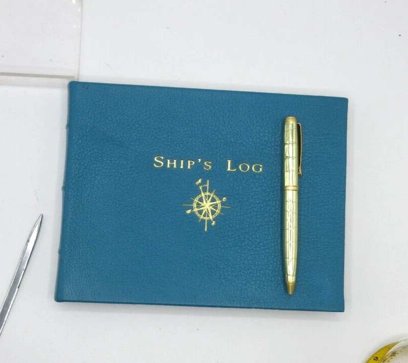 New Ship's Log by Graphic Image AEON Division Turquoise Pebble Grain Leather Bound Cover Retails for $120 A classic captain's journal for trips on the high seas. This leather journal features 162 entry pages and 28 U.S. and international maps. Record all your adventures including places visited, people, weather, waves and crew. Size: 8-7/8" x 6-3/4", 190 pages Pebble Grain Leather Cover Smyth-sewn for strength and longevity Ships in GIFT BOX WE WILL ALWAYS ADJUST SHIPPING COSTS ON PURCHASES OF MULTIPLE ITEM If you’re buying multiple items from us, we are happy to ship everything to you in the same package. Simply add the items you want to buy to your cart and ebay will adjust the shipping cost as you checkout. Or select “request an invoice” and we will adjust the shipping cost.S.