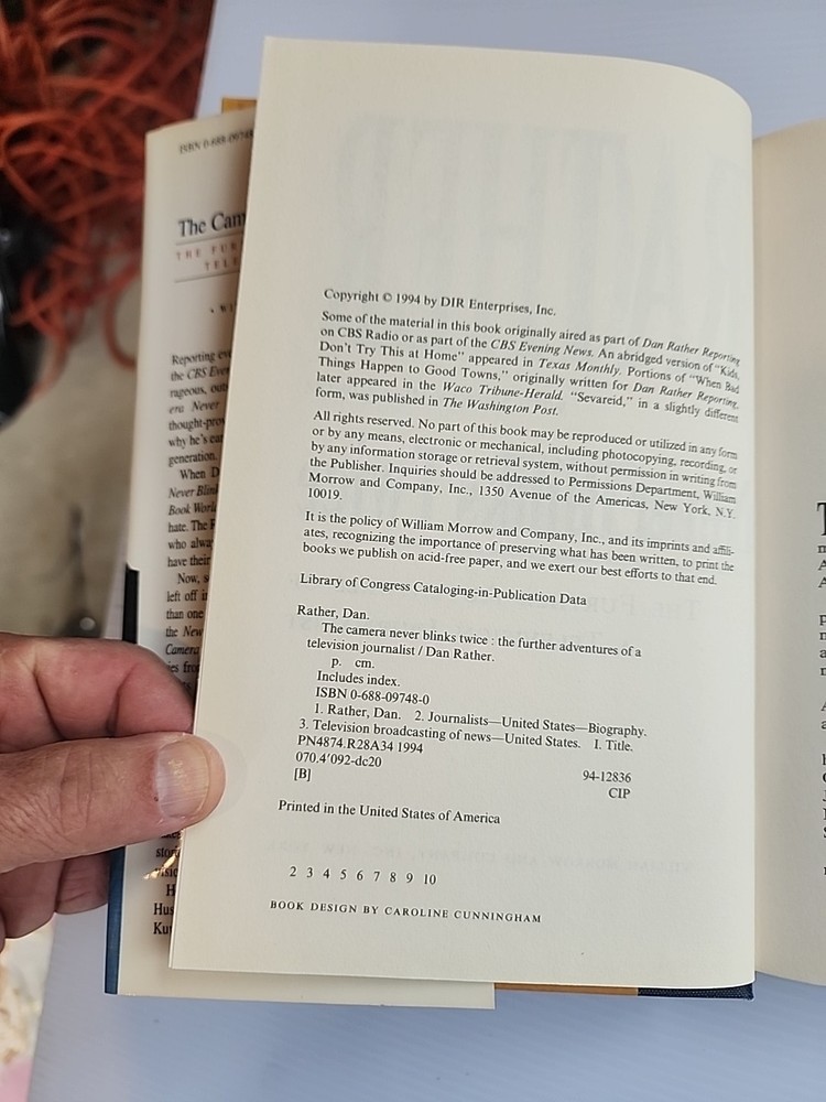 Dive into the world of journalism with Dan Rather's "The Camera Never Blinks Twice," a hardcover edition complete with a dust jacket. Autograph enthusiasts will be delighted to find that this volume is not only signed by the renowned journalist himself but also comes with an original autographed bookplate, adding a personal touch from the author. Whether for your personal library or as a gift, this book is a testament to a career in pursuit of truth.
