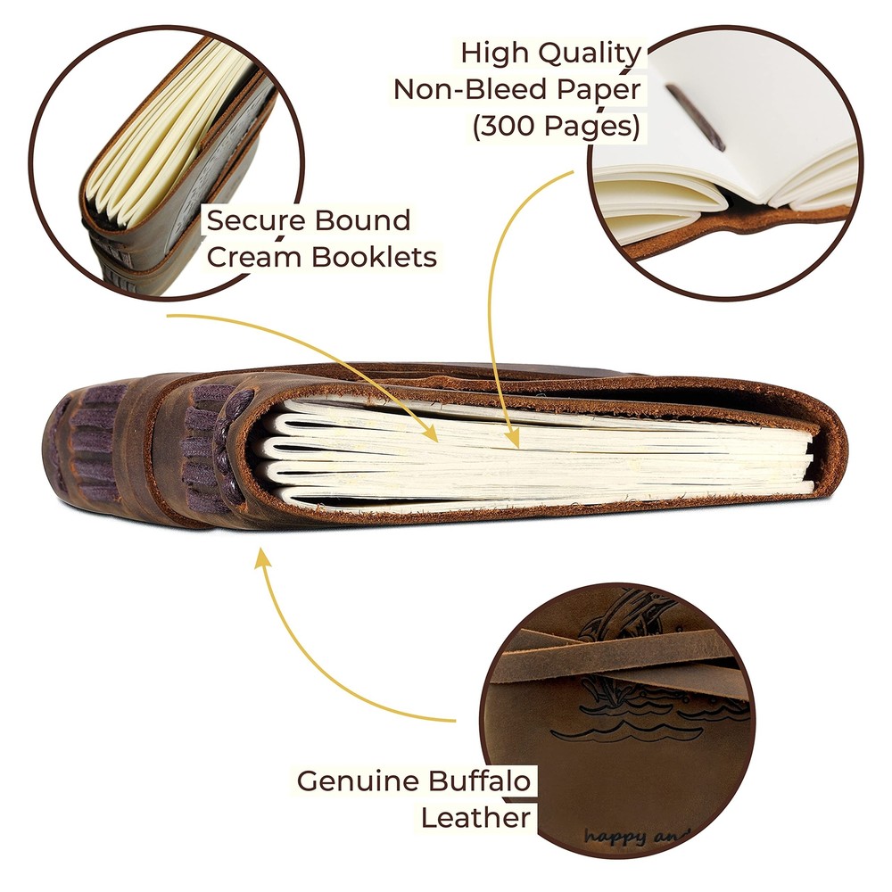 Sovereign-Gear Leather Bound Journal for Men and Women, Handmade Gift Set with Dolphin Embossed Journal and Stylish Pen, Vintage and Classic, Notebook, Sketchbook, Planner and Diary (300 Pages) (8x6) ✓ Free 60 Day Returns ✓ Free Express Shipping Description: Features: UNIQUE GIFT SET: Handmade leather journal with matching bookmark, designer pen and hidden pen holder. Presented in an eco-friendly recycled box. A timeless gift for that special someone who loves to write. PREMIUM LEATHER: Crafted with delicate yet super tough buffalo leather, including a long strap that secures the journal firmly. Our genuine leather is thicker than competitors and offers lifetime durability with lasting softness. Embossed jumping Dolphins on the soft cover will inspire you to make a splash with your words. RUSTIC DESIGN: Achieves a unique and distressed look when scratched and features decorative stitching for added charm. Coated with special natural oils that make handling a joy. Plus, it has a wonderful authentic leather smell that inspires you to write daily. QUALITY CREAM PAPER: 300 premium unlined multipurpose sheets for notes, daily plans, sketches, inspiring ideas, memories and more. Zero bleed through with fountain pens. Not refillable. PERFECT SIZE: 8x6" made to suit a wide range of writing styles. We also offer many other sizes and styles of journals, including refillable journals. There's something for everyone! Product Details: Brand: Sovereign-Gear Color: Brown Theme: Book Cover Material: Leather Style: Dolphin Ruling Type: Plain Special Feature: Pen Holder Number of Items: 1 Binding: Unknown Binding Manufacturer: Sovereign-Gear Manufacturer: Sovereign-Gear Brand: Sovereign-Gear Item Weight: 1.41 pounds Product Dimensions: 8.46 x 6.69 x 1.97 inches Item model number: SG-Dolphins-Journal-8x6 Is Discontinued By Manufacturer: No Color: Brown Cover Material: Leather Material Type: leather Number of Items: 1 Size: 8" x 6" Ruling: Plain Manufacturer Part Number: SG-LEJ-Dolphins Date First Available: July 18, 2019