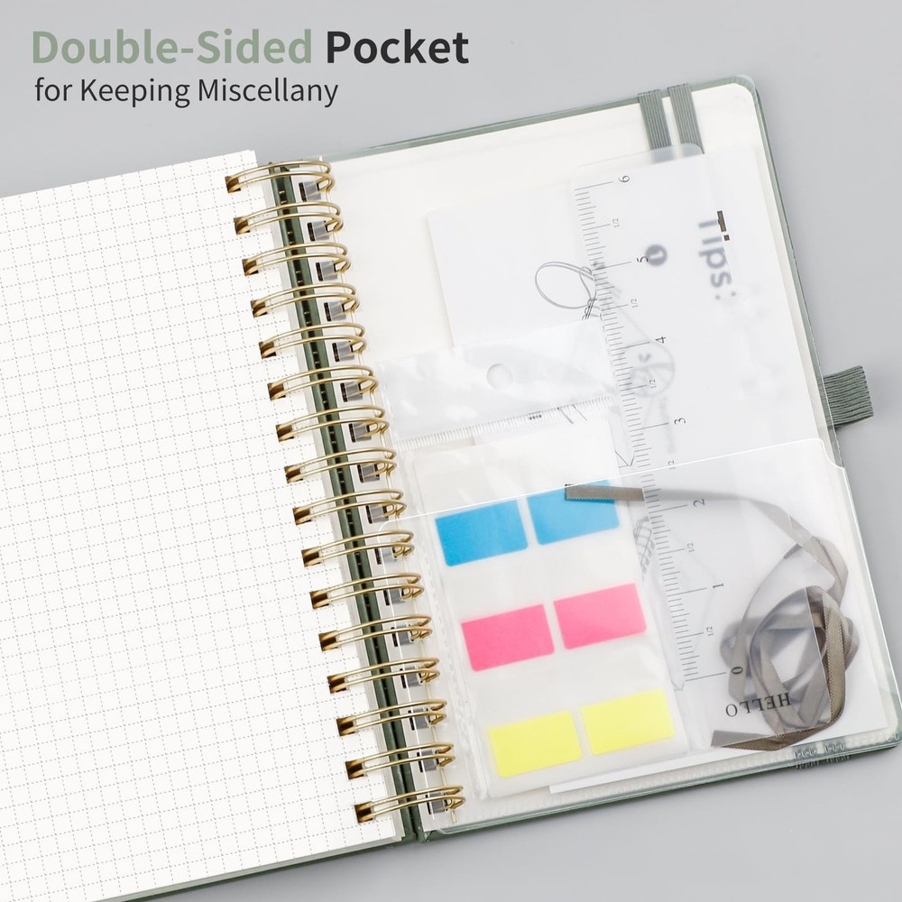 Spiral Graph Paper Notebook - 300 Pages, 100 GSM Thick Grid Notebook, A5 Small Hardcover Leather Journal for Women Men Writing Engineering Graphing, 5.7" x 8.22", Light Green 300 Pages Thick Notebook: graph paper notebook offers 300 pages (150 sheets) in A5 size (5.7" x 8.22"). Each page has 5mm x5mm square spacing, ideal for drawing, writing, or making charts, consolidating all notes in one place 100 GSM Thick Paper: 100 GSM thick acid-free paper prevents ink bleed-through and offers a comfortable writing experience on both sides of each page Graph Journal Additional Features: The graph notebook includes sticky notes, 1 DIY ribbon bookmark, a double-sided PVC back pocket, 1 pen holder, 1 removable ruler, 2 Elastic bands, and a humane rounded arc corner design PU Leather Hardcover & Strong Twin-Wire Binding: The squared notebooks feature premium vegan leather covers in various colors to meet your classification needs and protect pages; Sturdy spiral binding makes it easy to turn pages (180° lay flat, 360° flip) and tear off unwanted pages, suitable for right and left-handed users Versatile Use: Ideal for all office, school, and home use including graphing, bullet journaling, note-taking, writing, and more. High-quality design makes it a thoughtful gift for friends, family, classmates, and colleagues