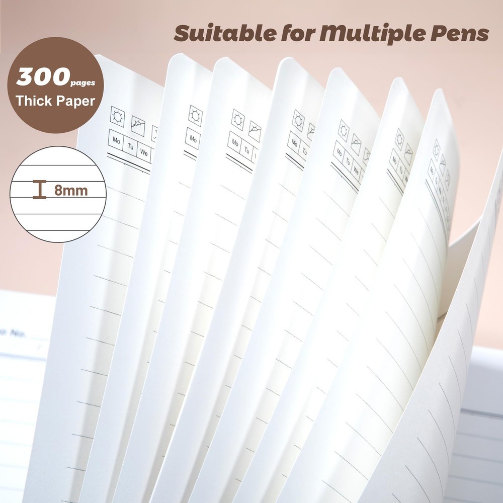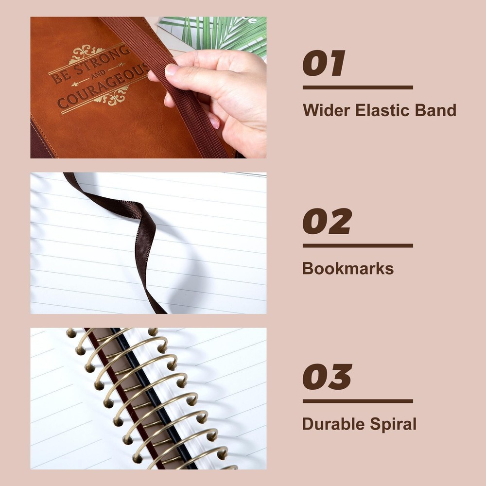 B5 Leather Spiral Notebook Hardcover Leather Spiral Notebook -- notebook cover is made of high-quality vegan leather, which is sturdy and durable, waterproof and stain-resistant. Hand-stitched leather corners and foil stamping give the spiral notebook a high-end and sophisticated look. Large spiral notebook size is 8 x 10, 300 pages paper for many occasions. Some people believe that "No design is the best design", the vintage leather cover and the gold spiral make the spiral journal simple and good-looking. 100 GSM High-quality Paper -- This journaling notebooks uses 100gsm premium acid-free paper, 7.1mm, which is thicker than traditional paper, can write on both sides, no ink feathering and bleeding. Suitable for most pen types. 150 sheets/300 pages lined paper, It can provide you with a lot of creative space. Upgrade Practical Functions -- We have modified the elastic band to be wider to prevent breakage, and it is 0.2 inches wider than traditional notebook. Single spiral avoids the appearance of detached inner pages. The bookmarks and sticky notes in the notebook journal make you easy to quickly find content. Internal pockets store small cards and important note-taking notes. Widely Used -- This leather spiral notebook is suitable for many occasions.It can be used as a work notebook, meeting notebook, school notebook, travel notebook, note taking in college classes, and it is also an excellent gift for birthday, Halloween, Christmas, back to school and graduation. Brand Quality Assurance -- Our products are based on integrity, we hope to bring you a good shopping experience, if you encounter any problems in the purchase process, you can send us an email at any time, we will give you a timely reply.