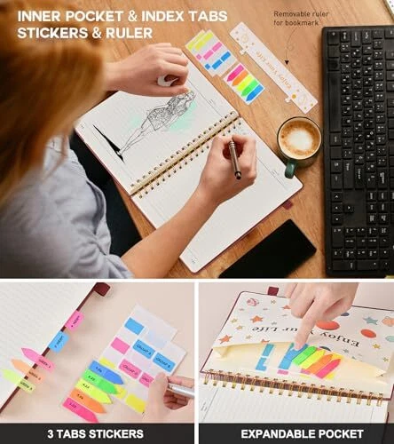 Menu 1. We require immediate payment. 2. We currently accept payment via eBay managed payments only. 3. Once payment is cleared, we will dispatch your shipment within 1-3 business days. Please refer to the "Shipping" tab for more information regarding shipping speed to your destination. Spiral Notebook Journal for Women Men, 300 Numbered Lined Pages, College Ruled, A5 Hardcover Spiral Bound Notebook for School, Work, Note Taking Writing, Leather Spiral Journal Medium 5.9"x8.5" Product description 【A5 Spiral Notebook & 300 Numbered Lined Pages】This spiral journal notebook 5.9in x 8.5in features 300 numbered lined pages, 1 persona data page and 3 pages Content, offering extensive space for your notes, ideas, and sketches. The college ruled format makes it ideal for use as a journal for women, men.The 7mm line spacing ensures a comfortable writing experience, while the spiral bound design makes it a great choice for college ruled spiral notebooks and spiral bound journals. 【Strong Metal Twin-wire & 180° Lay Flat Design】Featuring a robust metal twin-wire binding, this notebook opens flat at 180°, ensuring a smooth and comfortable writing experience. This design is particularly advantageous for those using it as a business notebook, professional notebooks for work. This spiral bound notebook features a hardcover vegan leather cover with printed design adds an element of sophistication and style. 【Functional Accessories & Organizational Tools】This spiral journal notebook includes 1 pen holder that securely keeps your writing tool within reach, 2 elastic closure bands that protect your pages, and an inner pocket for storing small items like notes or receipts.3 index sticker tabs and one removable bookmark ruler assist in navigation.These features make it an excellent choice for school notebooks, or work notebooks, serving as a reliable spiral journal for college use. 【Easy Tear-off Design & Thick Paper Quality】The spiral bound notebook pages are Easy to tear-off, ideal for sharing notes or removing pages without hassle. The thick paper minimizes ink bleed-through, ensuring clarity and legibility in your notes. Whether you're using it as a daily journal, travel journal, or journaling notebooks, this lined notebook offers a smooth writing experience. As a wide ruled notebook, it's perfect for thorough note-taking. 【Versatile Use & Gift-worthy Design】This spiral notebook is suitable for a wide range of uses. Whether you need it for school, college, work, or personal journaling, it's the perfect choice. It can be used as a diary, daily journal, or writing notebook. The college ruled pages are great for note-taking and studying. With its stylish design and practical features, this notebook is sure to become your go-to for all your writing needs. PLEASE MESSAGE US IF YOU HAVE ANY OTHER QUESTIONS, AND MANY THANKS FOR READING ALL OF THIS. Copyright ©#. All Rights Reserved.