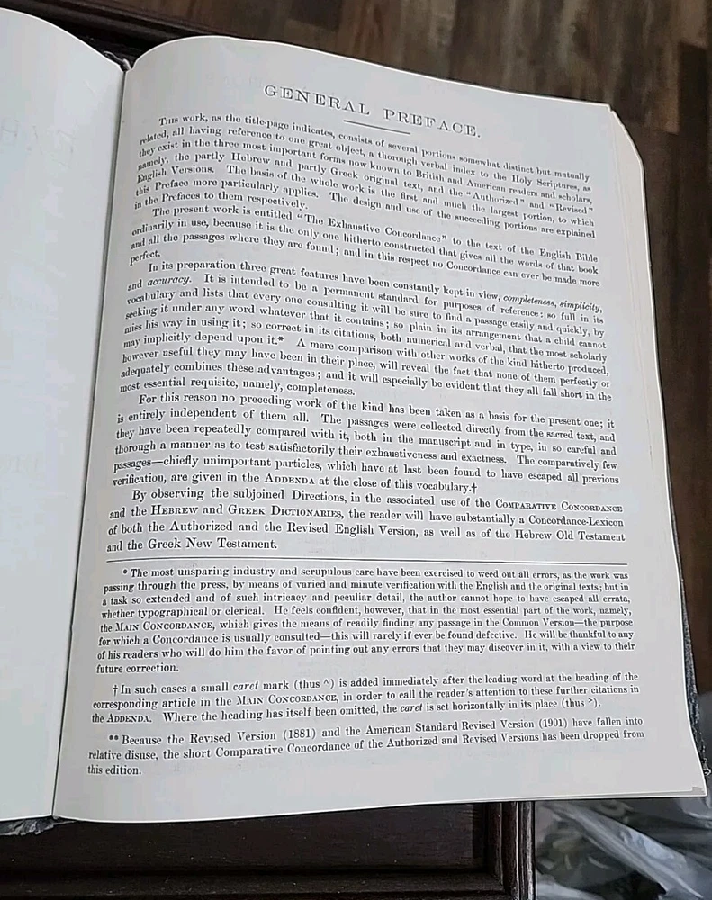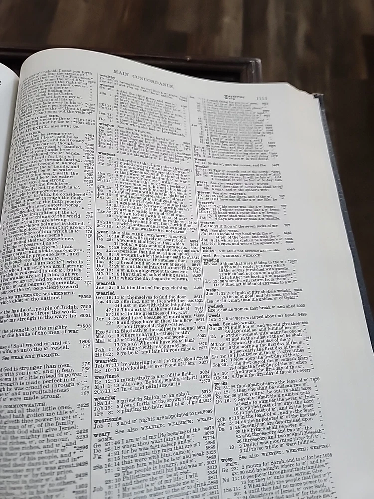This exhaustive concordance of the Bible with Greek and Hebrew dictionaries by James Strong is a valuable resource for adults interested in spirituality and religious studies. The book is published by Crusade Bible Publishers and measures 9 inches in length, 11 inches in height, and 2 inches in width, with a total of 1545 pages. This Bible is used but appears to be in good shape other than some scuffing and wear on the corners and edges of the hardcover. It does not appear to have been written in, or highlighted. The book features a faux leather bound format and is vintage, although the publication year is unknown. It is a non-fiction narrative type and is written in English, the original language. The intended audience is adults, and the book is not personalized or inscribed. The features of the book include a Greek Testament Dictionary and a Hebrew Bible Dictionary. This item is perfect for those interested in religion and bibles, and it is a must-have for any collection.