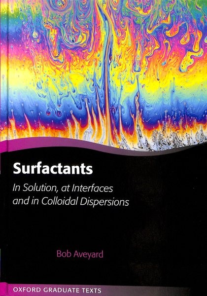 Surfactants : In Solution, at Interfaces and in Colloidal Dispersions, Hardcover by Aveyard, Bob, ISBN 0198828608, ISBN-13 9780198828600, Like New Used, Free shipping in the US Surfactants... today you have probably eaten some, or rubbed others on your body. Plants, animals (including you) and microorganisms make them, and many everyday products (. detergents, cosmetics, foodstuffs) contain them. Surfactant molecules have one part which is soluble in water and<br>another which is not. This gives surfactant molecules two valuable properties: 1) they adsorb at surfaces (. of an oil droplet in water), and 2) they stick together (aggregate) in water. The aggregates (micelles) are able to dissolve materials not soluble in water alone, and adsorbed surfactant<br>layers, at the surfaces of particles or (say) oil droplets in water, stop the particles or drops sticking together. This is why stable emulsions such as milk do not separate into layers. This book treats the basic physical chemistry and physics underlying the behaviour of surfactant systems.<br><br>In this book, you will first learn about some background material including hydrophobic hydration, interfacial tension and capillarity (Section I). Discussion of surfactant adsorption at liquid/fluid and solid/liquid interfaces is given in Section II, and includes thermodynamics of adsorption,<br>dynamic and rheological aspects of liquid interfaces and the direct characterisation of surfactant monolayers. In Section III, a description is given of surfactant aggregation to give micelles, lyotropic liquid crystals, microemulsions and Winsor systems. There follows a discussion of surface<br>forces and the way they confer stability on lyophobic colloids and thin liquid films (Section IV). Various dispersions stabilised by adsorbed surfactant or polymer (including solid in liquid dispersions, emulsions and foams) are considered in Section V. The wetting of solids and liquids is explored<br>in Section VI. Like surfactants, small solid particles can adsorb at liquid/fluid interfaces, form monolayers and stabilise emulsions and foams. Such behaviour is covered in Section VII. It is assumed the reader has a knowledge of undergraduate physical chemistry, particularly chemical<br>thermodynamics, and of simple physics. Mathematics (elementary algebra and calculus) is kept at a level consistent with the straightforward derivation of many of the equations presented.<br>