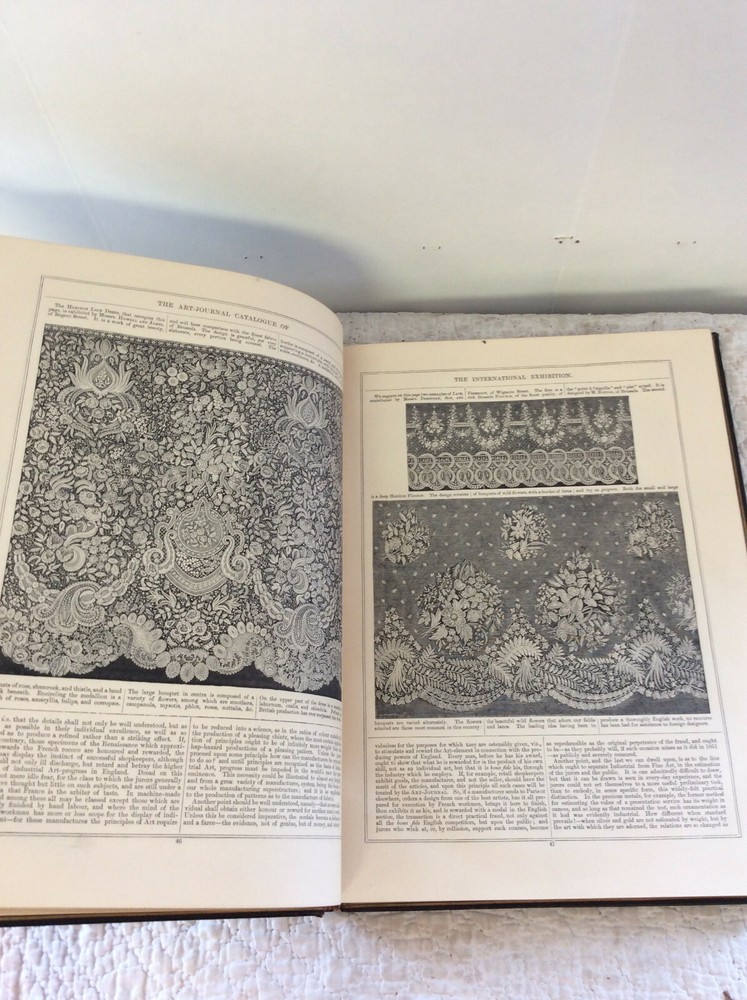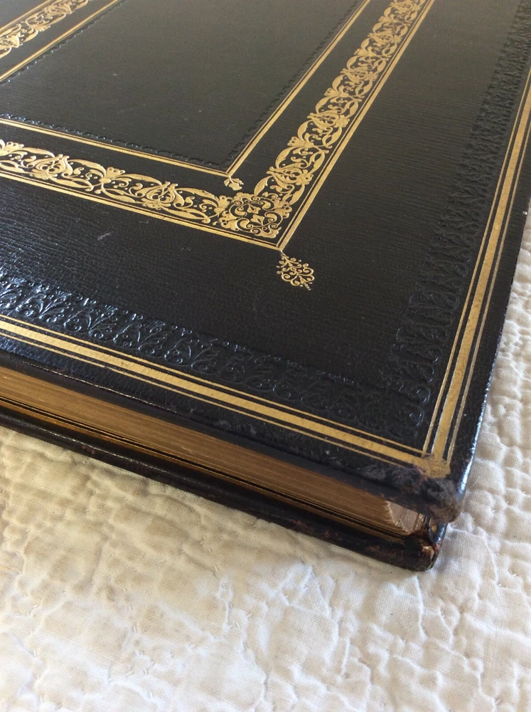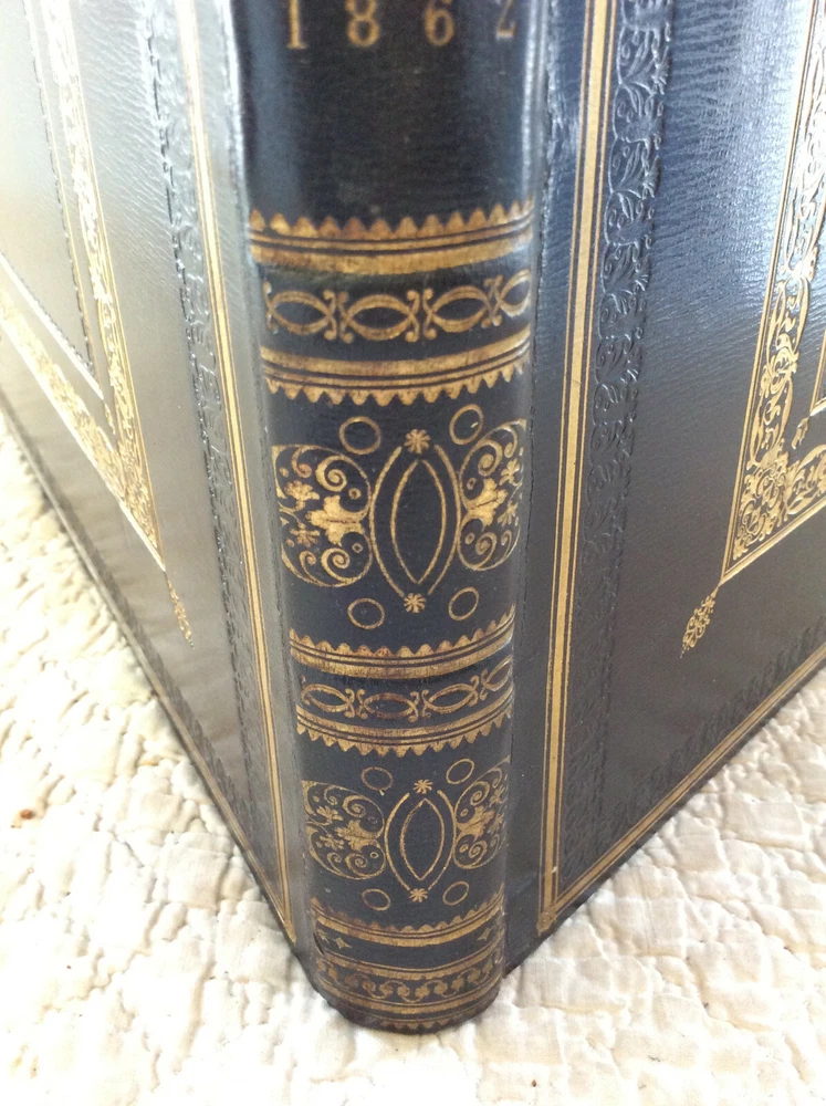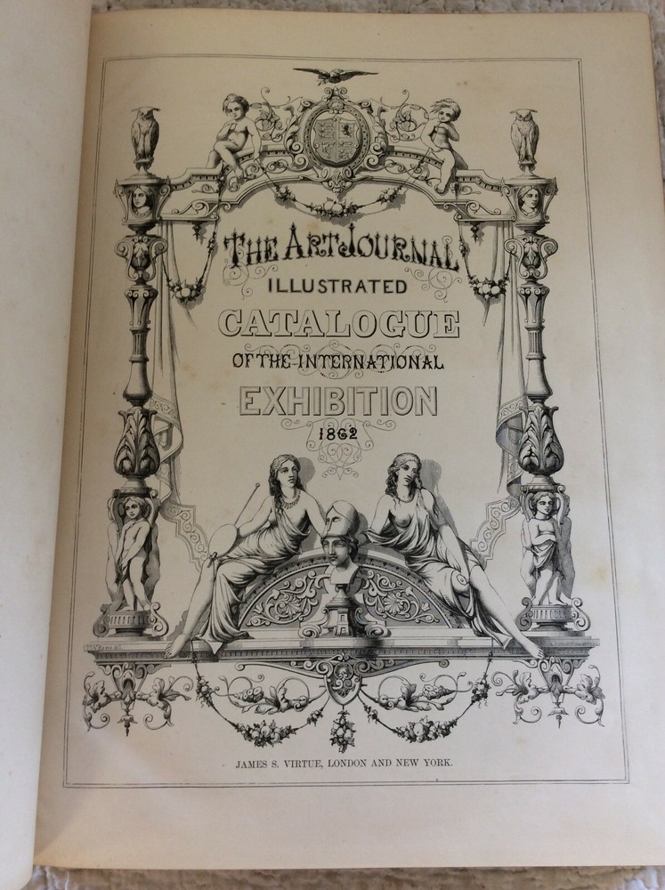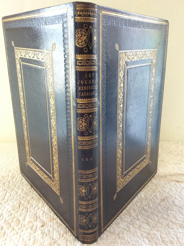 THE ART JOURNAL ILLUSTRATED CATALOGUE OF THE INTERNATIONAL EXHIBITION 1862 London/New York: James S. Virtue, 1862. Leather. 324p. An oversize hardcover book bound in full black leather with ornate gilt decorations and foredges. Very good condition, with very mild corner wear, some light rub marks on the leather, and unobtrusive foxing near the beginning and end. The binding is tight and the text unmarked. A beautiful antique volume in excellent shape! Item #175667 A record of the Great London Exhibition of 1862, filled with lots of black and white engravings. Measures approx. 13" x 10"