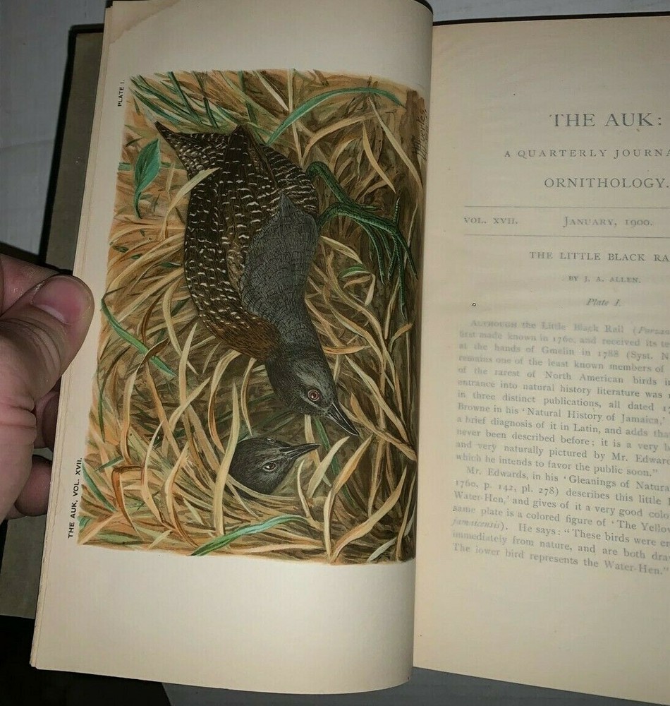 The Auk Volume 17 The Little Black Rail Vol 17, Page 1 The Rufous Hummingbirds of Cape Disappointment Vol 17, Page 8 On the Perfected Plumage of the King Eider (Somateria spectabilis) Vol 17, Page 16 Ranges of Hylocichla fuscescens, and Hylocichla fuscescens salicicola in North America Vol 17, Page 18 A New Wren from Alaska Vol 17, Page 25 New Species, Etc., of American Birds. V. Corvidæ (Concluded) Vol 17, Page 27 New Species, Etc., of American Birds: VI. Fringillidæ (Supplement) Vol 17, Page 29 The Conditions Governing Bird Life in Arizona Vol 17, Page 31 The Moult of the North American Tetraonidæ (Quails, Partridges and Grouse) Vol 17, Page 34 Report of the A. O. U. Committee on Protection of North American Birds Vol 17, Page 51 Seventeenth Congress of the American Ornithologists' Union Vol 17, Page 58 A Rare Record for Eastern Long Island Vol 17, Page 63 The Occurrence of the Egyptian Goose in North America Vol 17, Page 64 Strix vs. Aluco Vol 17, Page 65 The Red-Headed Woodpecker near Chicago, Ill Vol 17, Page 67 Date of Discovery and Type Locality of the Mountain Mockingbird Vol 17, Page 68 Notes on Birds of Long Island Vol 17, Page 69 Newfoundland Notes Vol 17, Page 71 Merriam's Biological Survey of Mount Shasta Vol 17, Page 73 Palmer's 'The Avifauna of Pribilof Islands' Vol 17, Page 74 Howe and Sturtevant's 'Birds of Rhode Island' Vol 17, Page 76 Newton's 'Dictionary of Birds' Vol 17, Page 77 Cory's 'The Birds of Eastern North America. Part II. Land Birds' Vol 17, Page 78 Sharpe's 'Hand-List of the Genera and Species of Birds' Vol 17, Page 79 Dubois's 'Synopsis Avium' Vol 17, Page 81 Bangs on Birds from the Sierra Nevada de Santa Marta, Colombia Vol 17, Page 82 Thompson on the Cranial Osteology of the Parrots Vol 17, Page 84 Macpherson's 'History of Fowling' Vol 17, Page 85 Whitman on 'Animal Behavior' Vol 17, Page 87 Publications Received Vol 17, Page 89 Notes and News Vol 17, Page 91 The Ivory-Billed Woodpecker in Louisiana Vol 17, Page 97 Care of Nest and Young Vol 17, Page 100 Notes on Some of the Birds of British Columbia Vol 17, Page 104 Arguments against the Banner Mark Theory Vol 17, Page 108 Descriptions of Three New Birds from Alaska Vol 17, Page 113 Description of a New Subspecies of Meleagris Gallopavo and Proposed Changes in the Nomenclature of Certain North American Birds Vol 17, Page 120 A Review of the Three-Toed Woodpeckers of North America Vol 17, Page 126 The Moult of the North American Tetraonidæ (Quails, Partridges and Grouse) (Concluded) Vol 17, Page 143 Further Notes on Lacépède's 'Tableaux' Vol 17, Page 166 Notes on the Genus Micruria Vol 17, Page 168 Ring-Billed Gull in New Hampshire Vol 17, Page 169 The Cinnamon Teal in Louisiana Vol 17, Page 170 Breeding of the Little Black Rail (Porzana jamaicensis) at Raleigh, North Carolina Vol 17, Page 171 Breeding of the Little Black Rail (Porzana jamaicensis) in New Jersey in 1844 and 1845 Vol 17, Page 172 The Arctic Three-Toed Woodpecker in Beverly, Mass Vol 17, Page 173 The Red-Headed and Other Woodpeckers in Michigan in Winter Vol 17, Page 174 The Red Crossbill Unusually Common at Portland, Maine, in Summer Vol 17, Page 175 Ontario Bird Notes Vol 17, Page 176 Bird News from Central New York Vol 17, Page 177 Some Necessary Changes in Nomenclature Vol 17, Page 178 An Interesting Bit of Manuscript Vol 17, Page 179 Keeler's Bird Notes Afield Vol 17, Page 180 Russell on Birds of the Northwest Territory Vol 17, Page 181 Loomis on California Water Birds Vol 17, Page 182 Stone on 'The Summer Molting Plumage of Certain Ducks' Vol 17, Page 183 Chapman on New Birds from Venezuela, Etc Vol 17, Page 184 Chapman on Birds from Greenland Vol 17, Page 185 Oberholser on the Flammulated Screech Owls Vol 17, Page 186 New Birds from the Bahamas Vol 17, Page 187 Stark's Birds of South Africa. Volume I Vol 17, Page 189 Publications Received Vol 17, Page 190 Notes and News Vol 17, Page 193 Occurrence of Larus glaucescens and Other American Birds in Hawaii Vol 17, Page 201 Notes on the Breeding Habits of the American Golden-Eyed Duck or Whistler (Clangula clangula americana) Vol 17, Page 207 Ecology of the Maryland Yellow-Throat, and Its Relatives Vol 17, Page 216 Notes on a Few Species of Idaho and Washington Birds Vol 17, Page 242 Description of a New Shearwater from the Hawaiian Islands Vol 17, Page 246 Nesting Habits of the Pacific Coast Species of the Genus Ruffinus Vol 17, Page 247 Descriptions of Thirty New North American Birds, in the Biological Survey Collection Vol 17, Page 253 A New Subspecies of the Genus Hylocichla Vol 17, Page 270 An Account of the Nesting Habits of Franklin's Rosy Gull (Larus franklinii), as Observed at Heron Lake in Southern Minnesota Vol 17, Page 272 Notes on a Collection of Bahama Birds Vol 17, Page 283 Notes on the Nesting of the Blue-Throated Hummingbird Vol 17, Page 294 Feeding Habits of the Pine Siskin Vol 17, Page 295 The Lark Finch and Baird's Bunting on Long Island, N. Y Vol 17, Page 296 Louisiana and Mississippi Bird Notes Vol 17, Page 297 Bird Notes from Sao Paulo, Brazil Vol 17, Page 298 Sanitary Habits of Birds Vol 17, Page 299 Rothschild and Hartert's 'Review of the Ornithology of the Galapagos Islands' Vol 17, Page 300 Salvadori and Festa on Birds of Ecuador Vol 17, Page 303 Oberholser on a Collection of Birds from Madagascar Vol 17, Page 304 Van Denburg's Notes on Birds of Santa Clara County, California Vol 17, Page 305 Collett and Nansen's Birds of the Norwegian North Polar Expedition Vol 17, Page 308 Stone on the McIlhenny Collection Vol 17, Page 310 Proceedings of the Nebraska Ornithologists' Union Vol 17, Page 311 Farr's Check List of New York Birds Vol 17, Page 313 Palmer on Legislation for the Protection of Birds Vol 17, Page 314 Publications Received Vol 17, Page 315 Formaldehyde as an Aid in Collecting Ornithological Specimens Vol 17, Page 318 Notes and News Vol 17, Page 320 A Nuptial Performance of the Sage Cock Vol 17, Page 325 Aptosochromatism Vol 17, Page 327 Notes on th