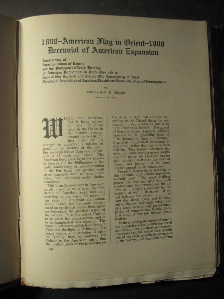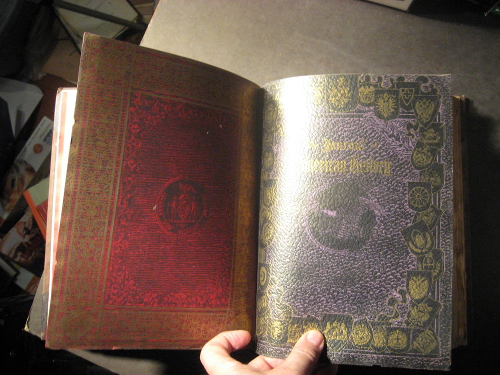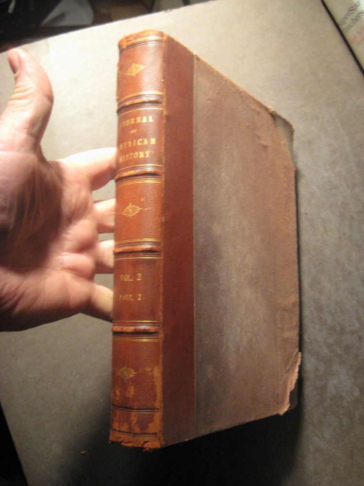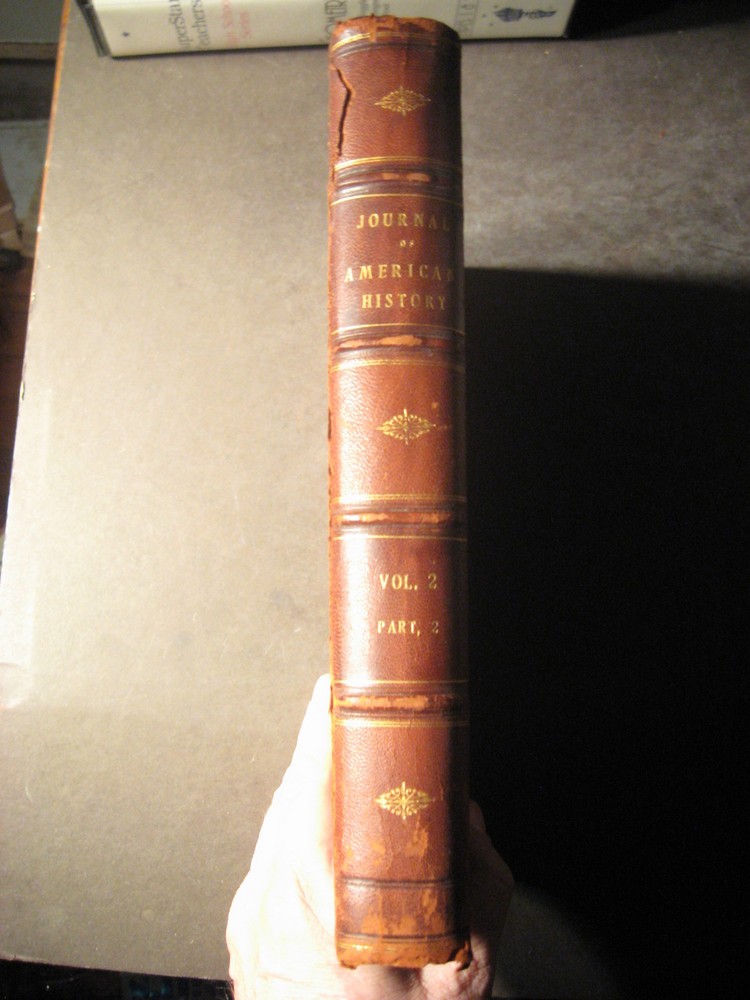 ***************************************************************************************************************************************** THE JOURNAL OF AMERICAN HISTORY Vol. 2, Part 2 Syllabus of the Franco-American Number., ThirdNumber, Second Volume. Syllabus of the Second Anniversary Number, Fourth Number, Second Volume. Produced by The Associated Publishers of American Records, Inc. in the Ancient municipality of New Haven, Commonwealth of Connecticut, in Quarterly Art Editions, four books to the volume at two dollars annually, fifty cents a copy. Compiled in collaboration with the Connecticut Magazine protected by copyright and printed from press of the Dorman Lithographing Company...1908. Good to Very Good Condition hardcover book. Exterior: Brown leather on corners and spine. Brown cloth on boards. Binding is square and tight, shopworn. Panels are discolored/stained. Hubbed spine has gilt lettering and gilt ornmentation. Cloth binding is peeling away from adjoining leather edges on corners. Interior: Marbled endpapers are clean. Pages (rag paper) are clean, very lightly toned; some are coated glossy bright. Side and bottom edges of pagers are rough cut. No owner names. No underlining/highlighting of text or handwriting of any kind. Very nicely illustrated, vintage single tone photos, full page and in text, depicting historic places; portraits of historic figures, coat of arms in color. Single cracked gutter. Pages start at number 359 and end at number 716 plus Index. Contents: A quality, early 20th century American history reference. Subject matter includes: An Historic Strain of Blood in America; Letter from a Soldier in the War of 1812; First Trials and the First American Courts; Secret Story of American Interference in Cuba; Rise of National Spirit in American Life; many other very interesting history articles and illustrated plates. NOTE: I only use photos of the actual item I'm selling (no stock photos). I combine shipping. Each additional book/CD set is $1.00 added to the media rate shipping cost of the heaviest book/CD set. This policy does not apply to sets of books. I will reduce the shipping cost as much as possible when you buy a set of books plus other book items. Winning bidder pays (Go to the SHIPPING CALCULATOR for this item). New York State residents pay 8% tax. Next day shipping with Paypal (which is easy to sign up for and no extra cost to the buyer). Payment to be received within 4 days. REFUND POLICY: A REFUND OF YOUR PURCHASE PRICE WILL BE GLADLY GIVEN FOR ANY ITEM WHEN RETURNED IN THE SAME CONDITION AS WHEN SENT.