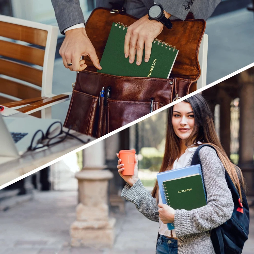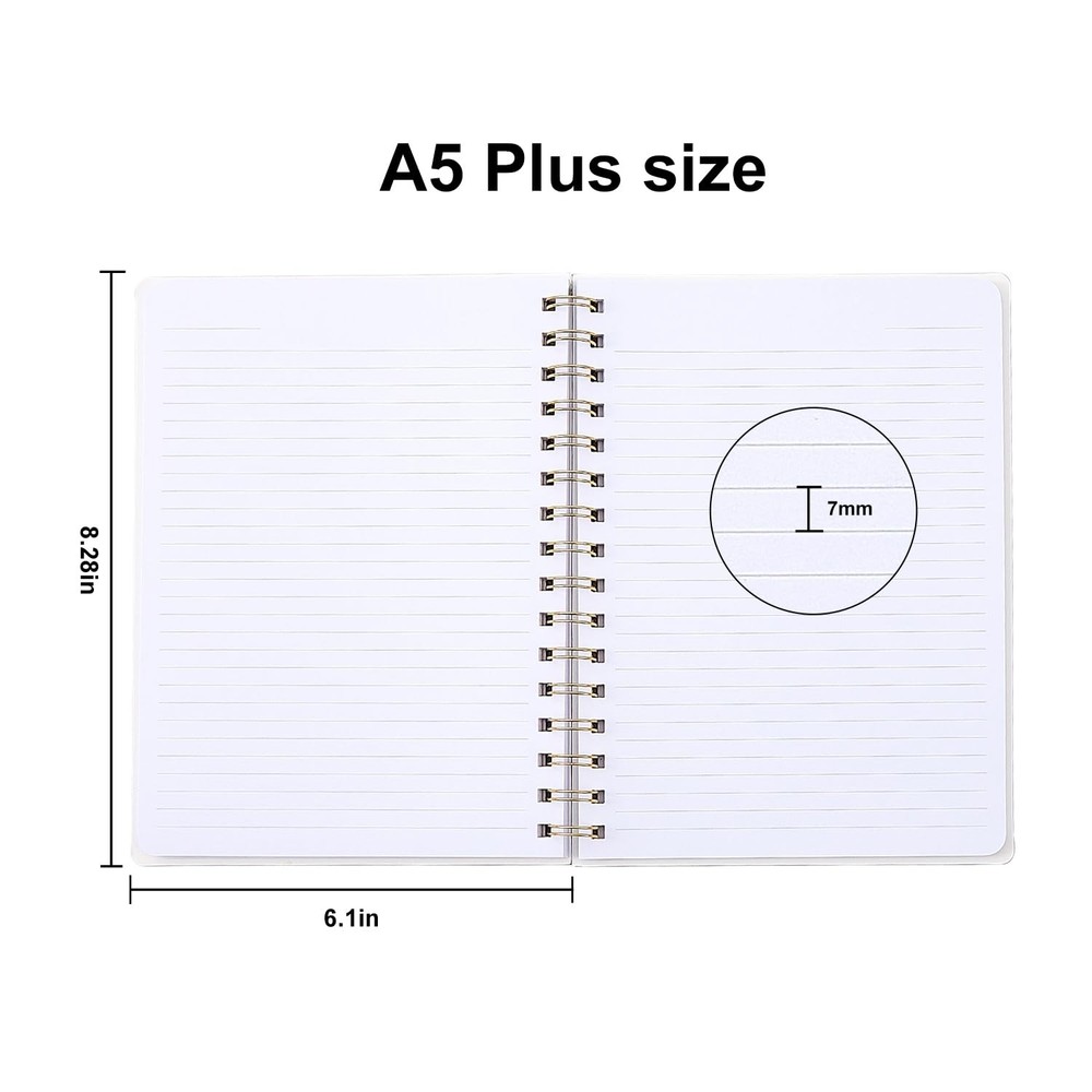 TSFPapier Spiral Notebook, Soft Cover Business Journal with Big Pocket Spiral Notebook / Journal - Has a fashionable design with PU Leather covers that are soft to the touch,includes 80 double-sided sheets; 160 ruled pages. Each page is perforated for clean and easy removal, ortable. Size - Cover size-Widen 8.5" x 6.34". Perfectly sized for office or home; easily tucks into backpack, carryon or tote and head anywhere,Don't let the inspiration go. Ruled Design Notebook - Ruled pages keep handwriting neatly aligned Notebook is wire-bound with gold twin-wire binding to add style and ensure lasting use. Premium Paper - In order to avoid the ink feathering and seepage, this ruled journal uses high quality and thick 100gsm paper which is thicker than other journals. Also, this lined journal uses ivory paper to provide a better writing experience by using this notebook. Multiple Uses - Ideal for all office, school and home uses, including for taking notes and keeping work in order, as a diary or journal for brainstorming ideas, creative writing or just doodling and drawing to your hearts content. Also, it is a perfect a gift choice for friends, family, classmates, and coworkers!