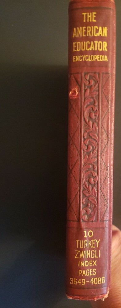 The American Educator Encyclopedia 1944 - Vol 10 Turkey - Zwingli with Index pages Tooled Leather