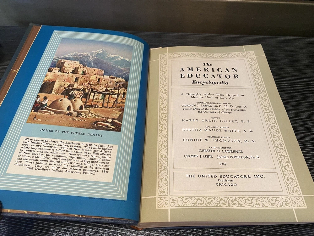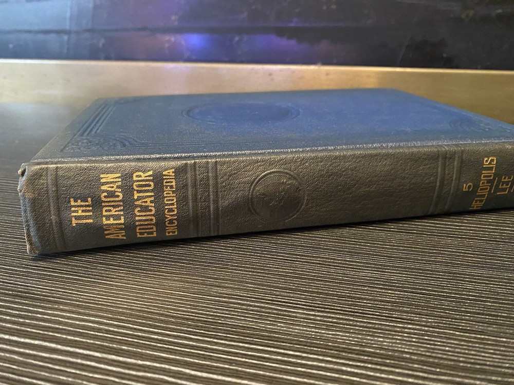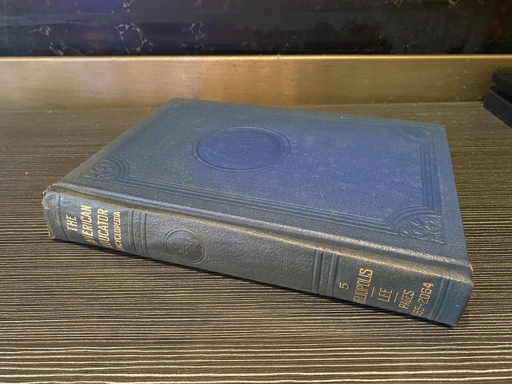 The American Educator Encyclopedia Book 5 Embossed Leather Dark Blue 1947 Lee. Great condition!