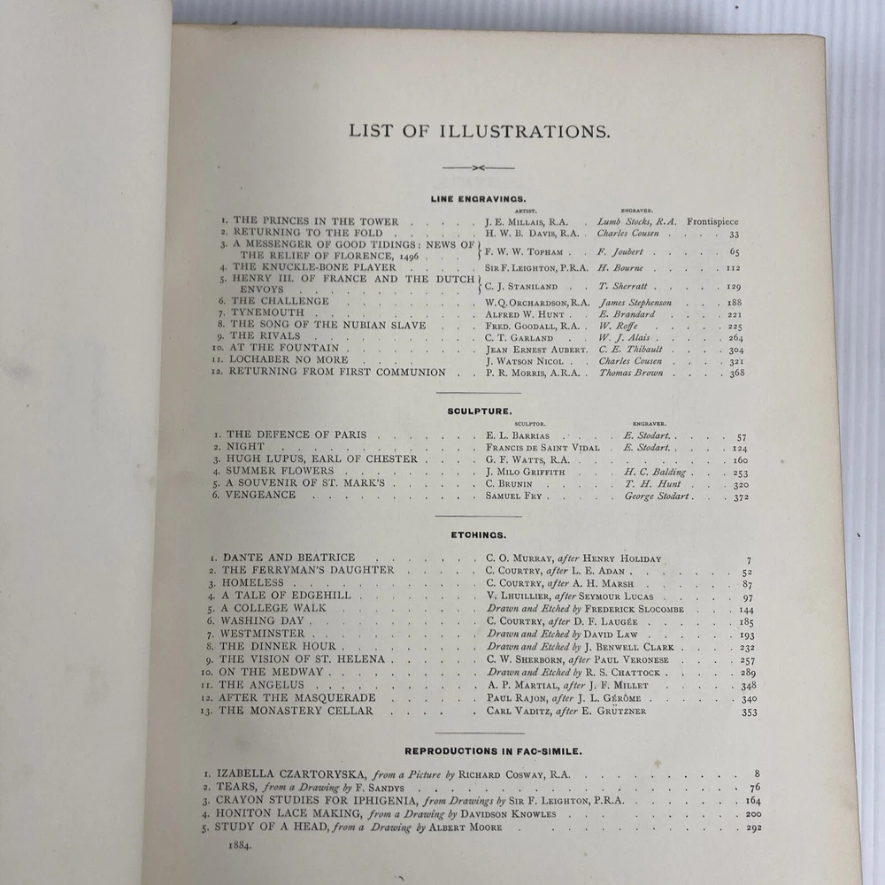 This is a rare and valuable edition of The Art Journal for 1884 , featuring the works of many authors and beautiful artwork from many artists. The journal is bound in fine leather and published by Patterson and Neilson in London. See photos for a list of contents and page examples. It has 380 detailed pages and is 13" long by 10" wide by 2" deep. I ship books carefully and securely in protective boxes. .