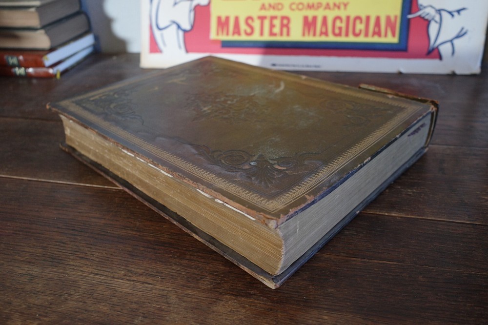 Published in London, 1968, Virtue and Company. Tearing to top of spine. Some water damage and other wear. Back cover badly worn. All pages intact. Sold as is. Amazing illustrations. 330 pages. Dedicated to The Prince of Wales.
