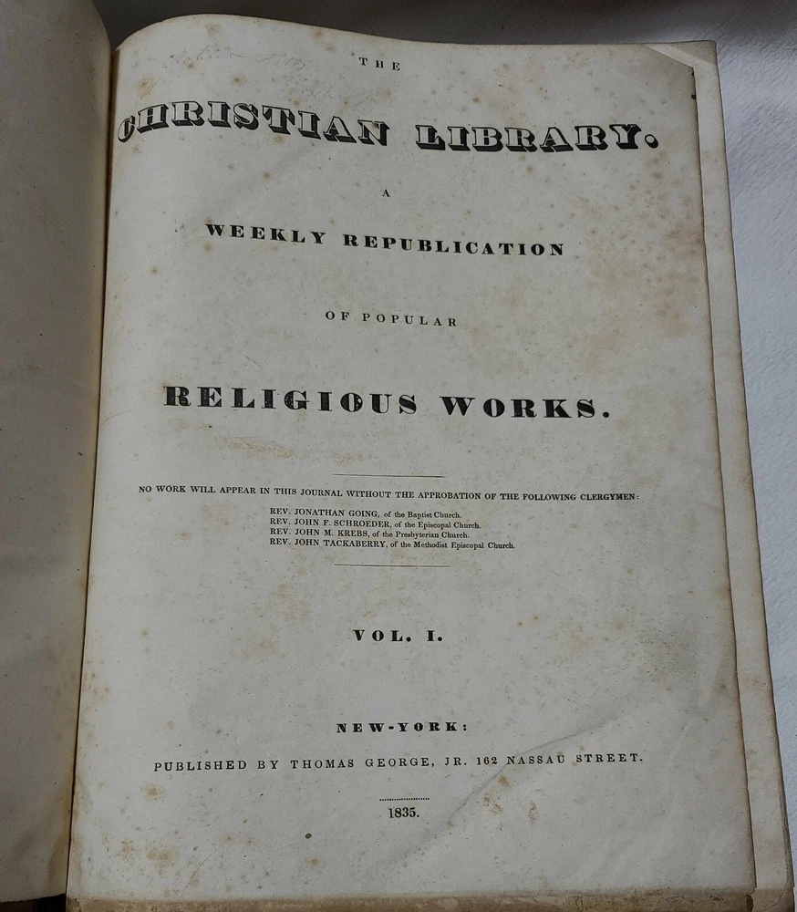 The Christian Library Weekly Religious Journal Vol.1 1835 New York. In overall good condition for its age..Shipped with USPS Media Mail.