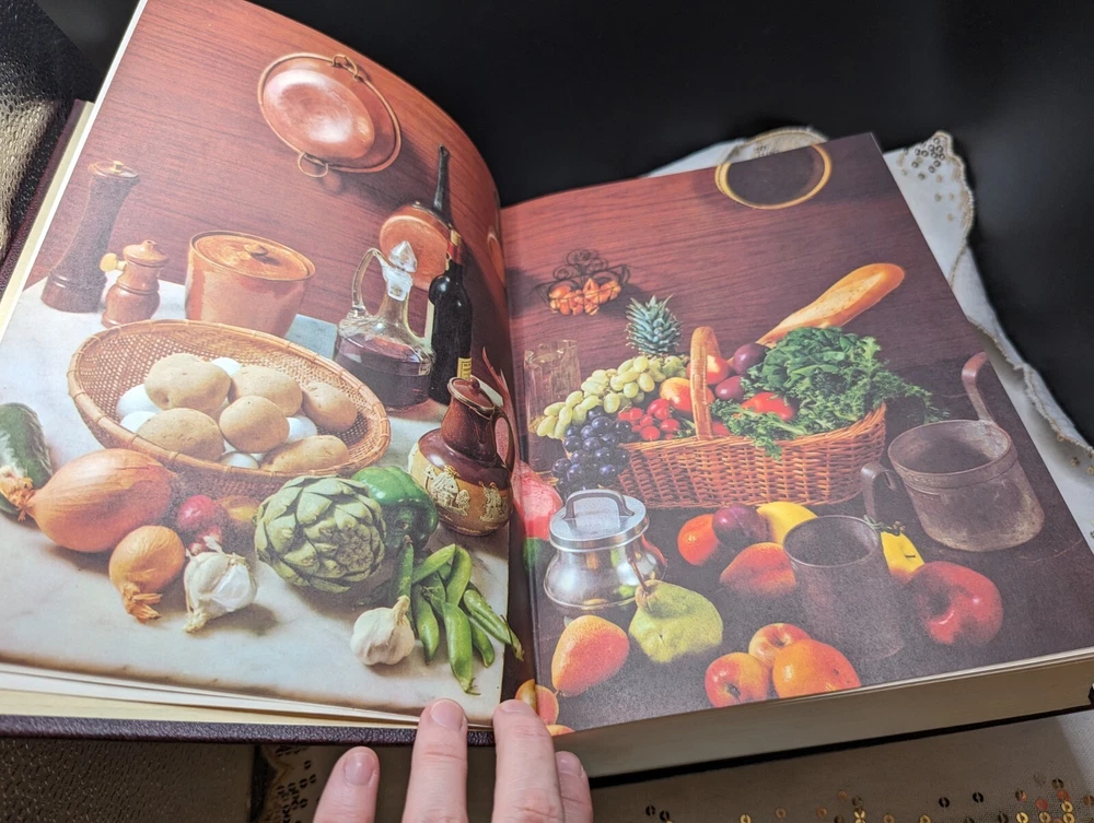 These books weigh a combined 11 bounds so USPS flat rate shipping it is then 😂 Ended up investing a little more than I wanted to when I acquired this two volume set, so the price seems a little higher than the others that's why. The books have great, easy to follow recipes with some of the ugliest food photographs I've ever seen from the 1970's. The books are brown leather with Gilt lettering and gorgeous looking binders in beautiful detail so they would look amazing on the cool book shelf. Very clean pages. The recipes sound delicious and would 100% use this book to try new recipes if I wasn't selling it. Please refer to all pictures for sizing and condition as they are part of the description. All items are pre-owned and sold as is. Feel free to message me with any inquiries. Thanks for stopping by! ✨FUNKY VINGETIQUES✨ **Returns Not Accepted**